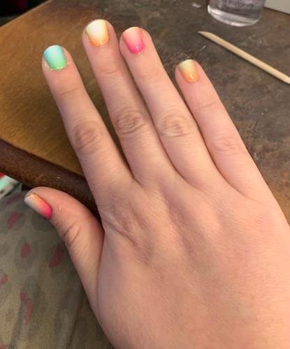 I Love these so much!! I was reluctant at first because I didn't think they would last and would be too complicated... but after trying... I'm a believer in Peachy nails... so easy to apply..takes me only about 10 mins... and they last me about two weeks... that's with going in hot tub and swimming... LOVE LOVE LOVE!!!!