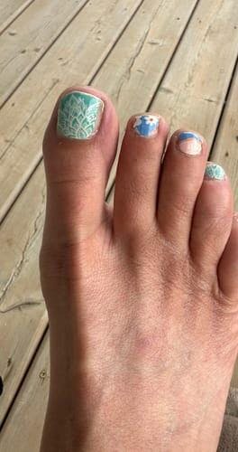 Ruth, you’ve nailed it—literally! We love that you’re mixing and matching your extras on your toes. Mandala + Summer Sangria made a great custom combo! Thanks for sharing your creativity with us—you’ve given us all some fun ideas!