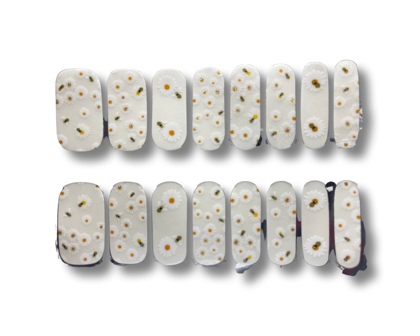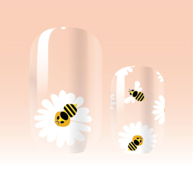 Transparent daisies & bumblebees w gold accents
