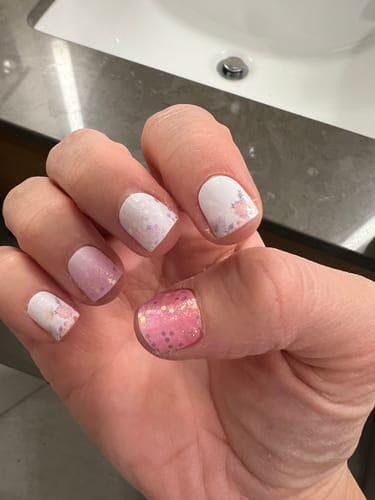 2 pink gradient wraps with a mix of small & large glitter at tips