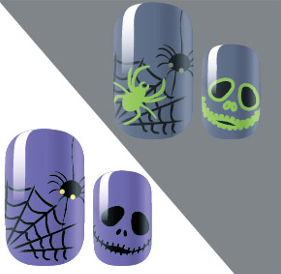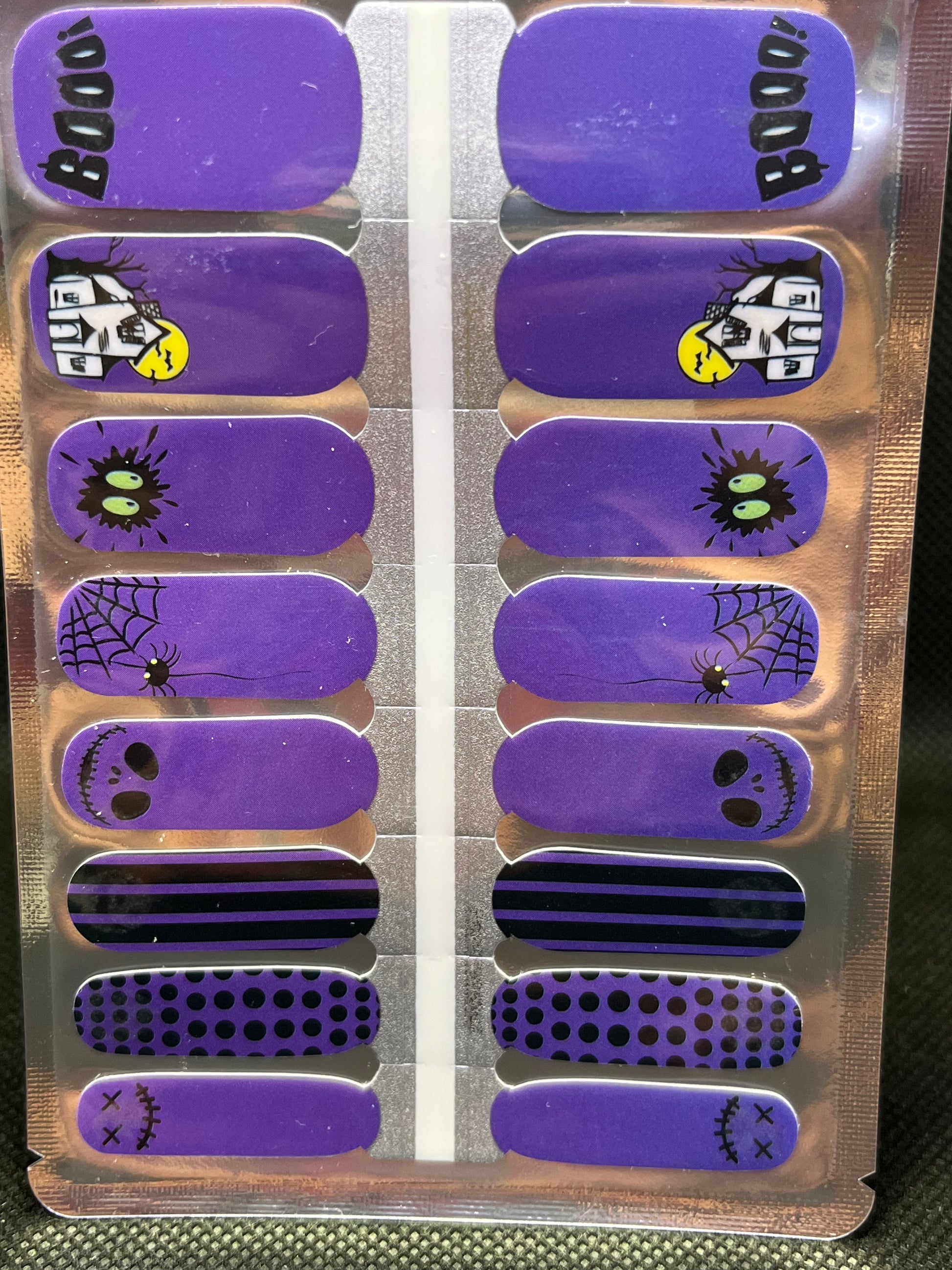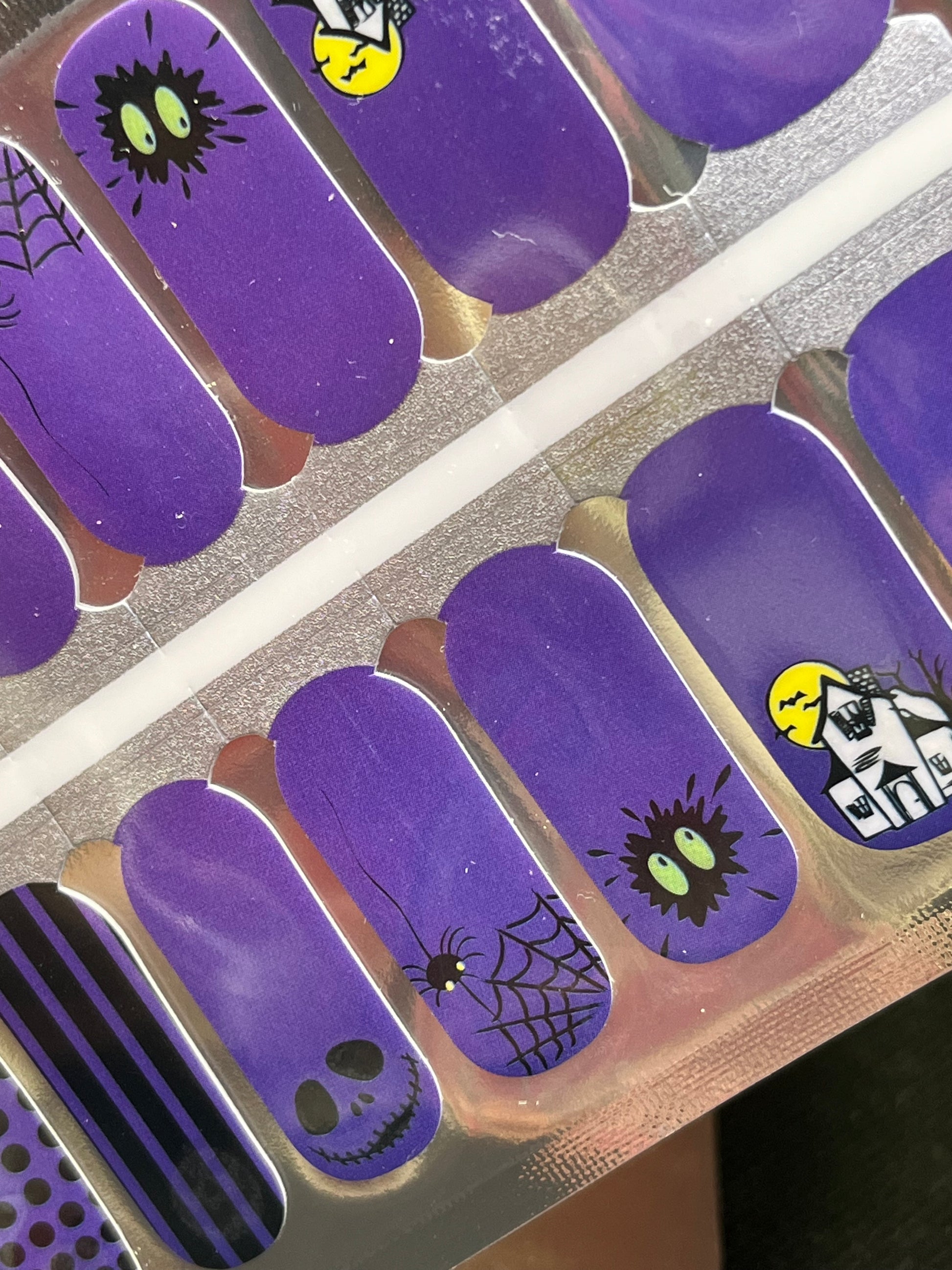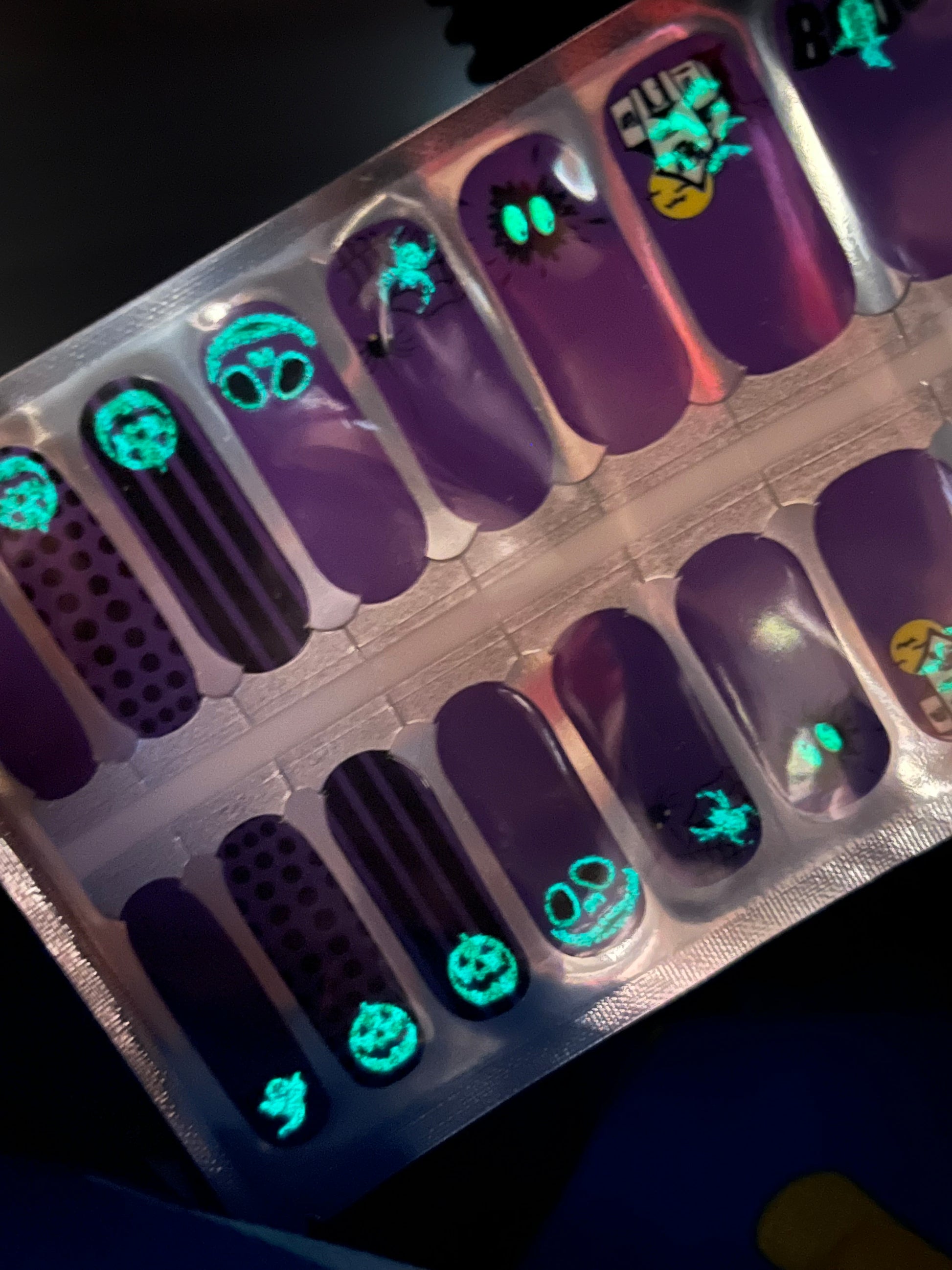 Purple background with an assortment of black seasonal elements PLUS surprise glow-in-the-dark accents