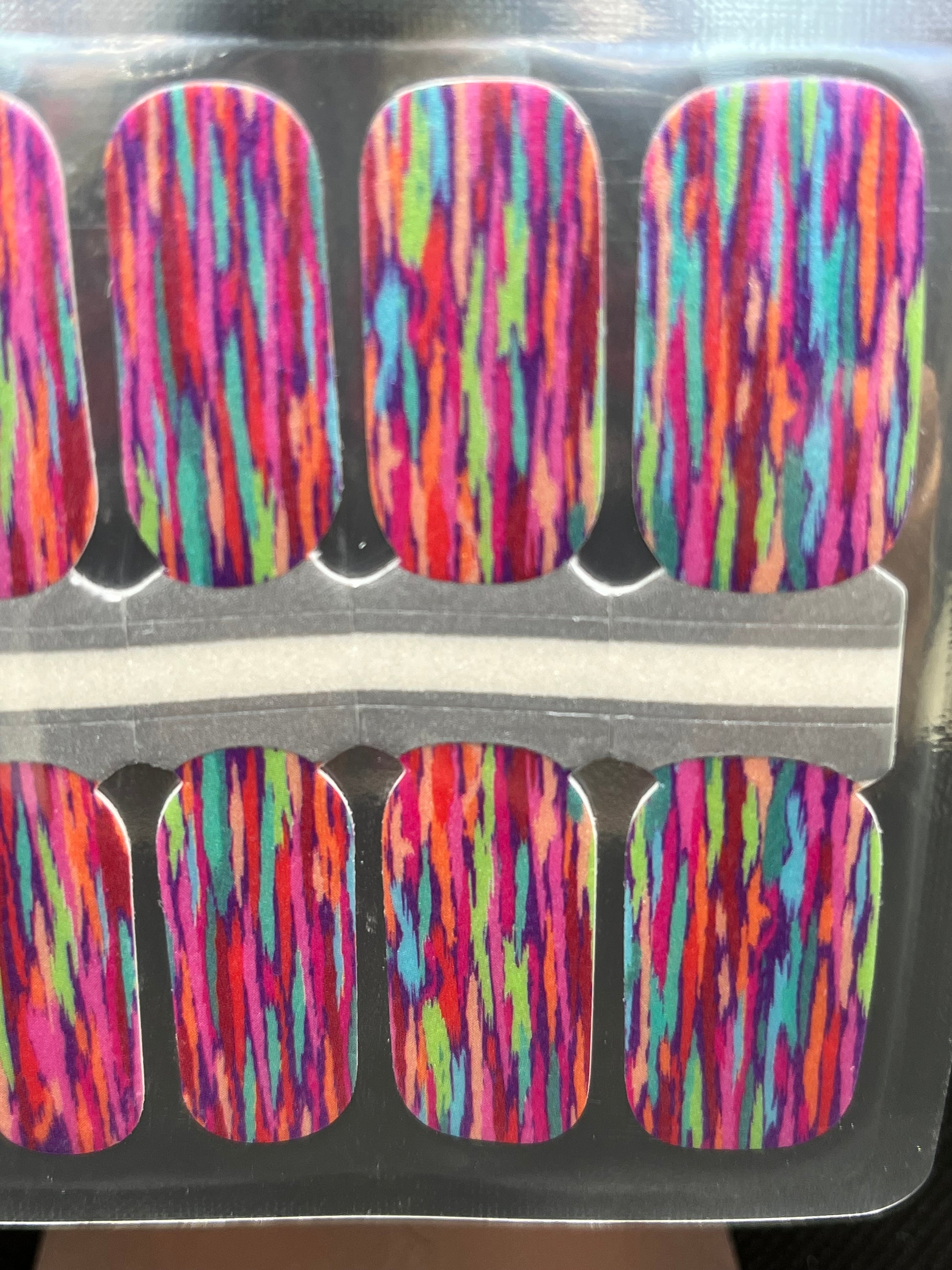 A blast of colour for your nails!  Bright, bold jewel tones in a vertical waterfall.