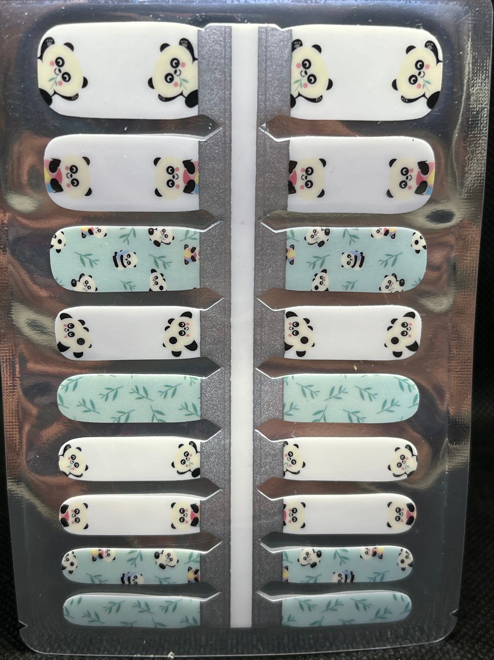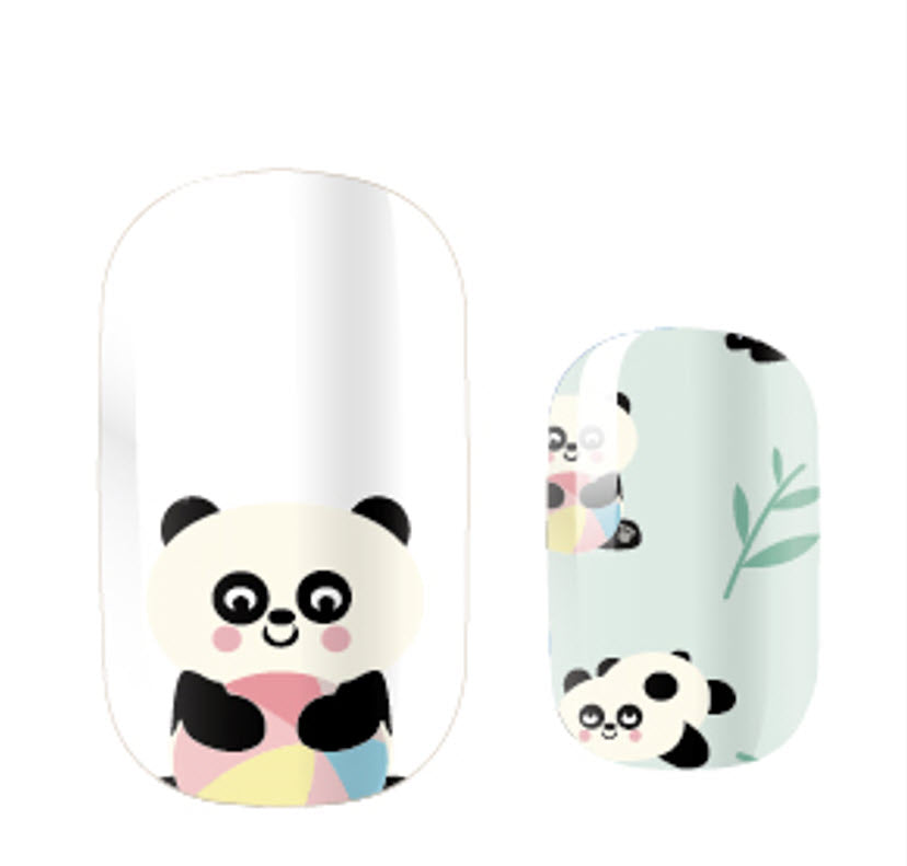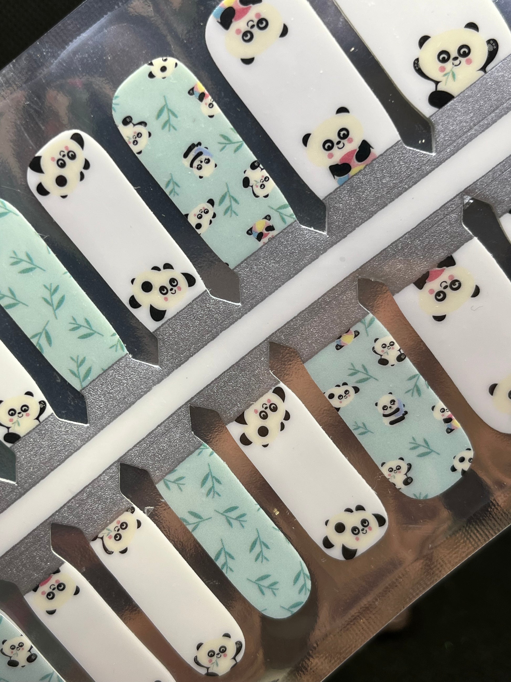 >Mix of pale green and off-white backgrounds covered in tiny bamboo leaves and super cute cartoon pandas.