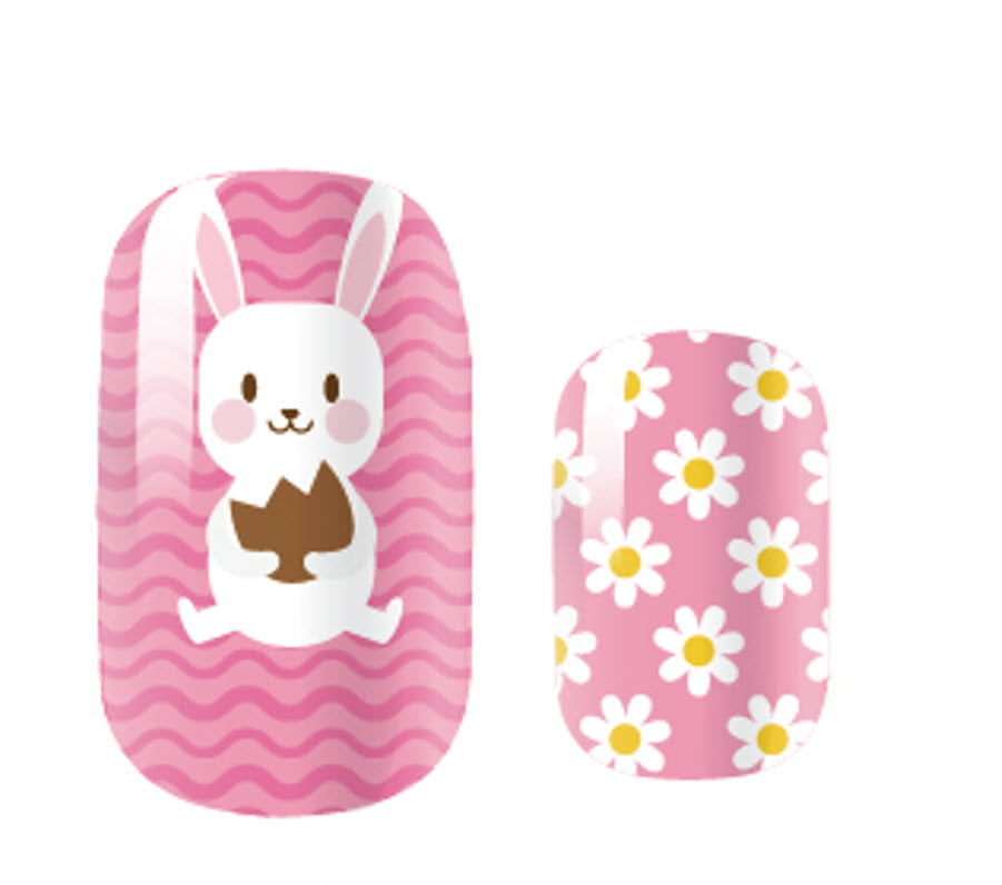 >Super cute mix of pastel colours - pink, yellow, teal and white tossed with a mix of polka dots, daisies, Easter eggs and the sweetest little white bunnies.