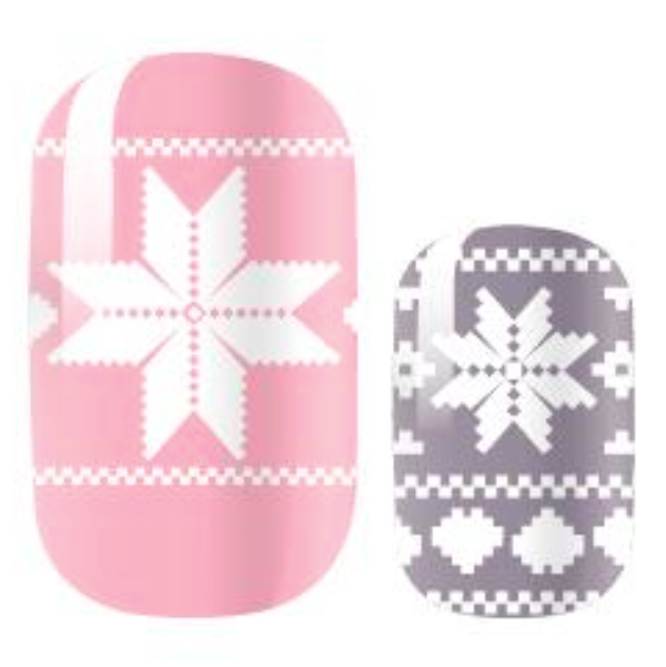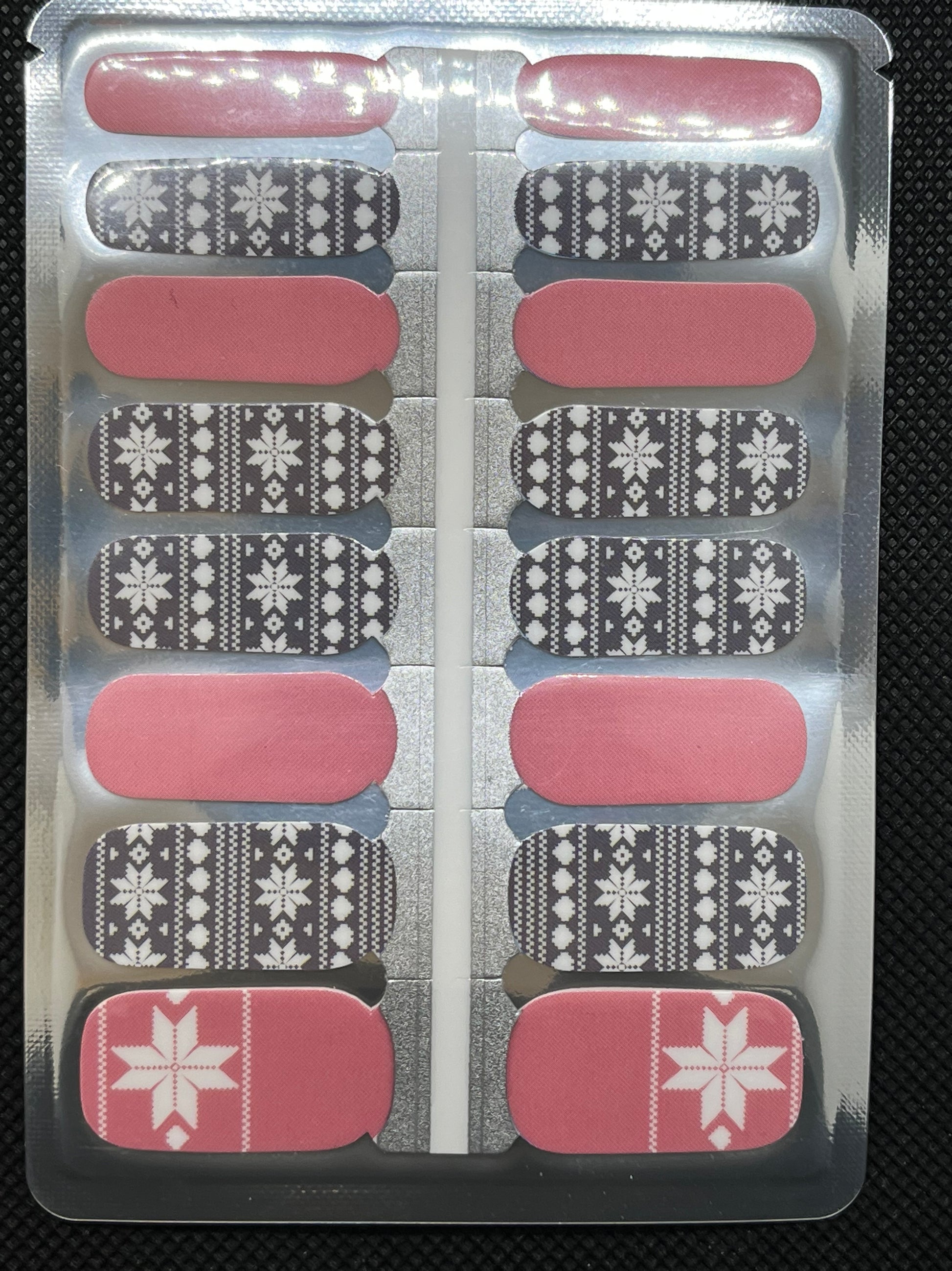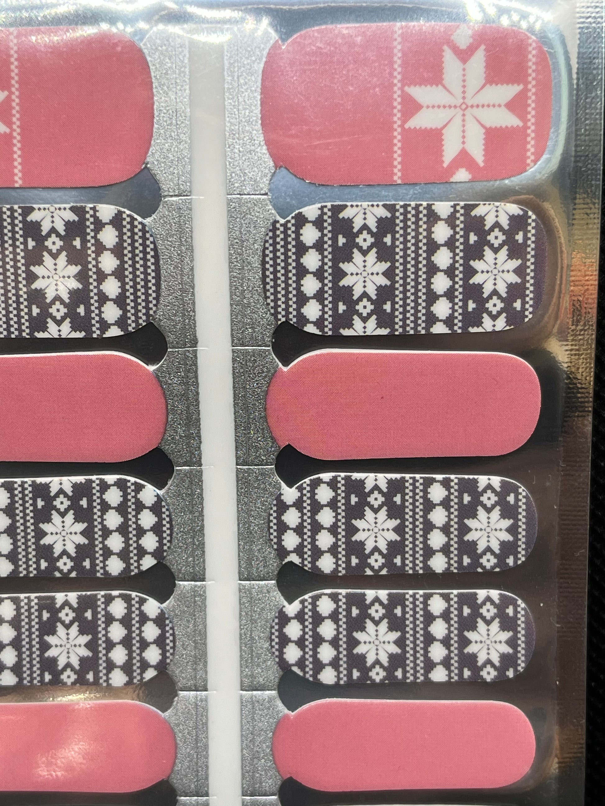 > Pretty mix of light pink and grey wraps featuring a white fair isle sweater design to create a nice pastel alternative to the traditional red & green holiday colours.