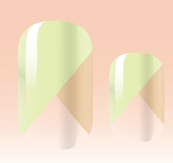 >Pistachio green & gold foil geometric design with clear peek-a-boo window at nail base