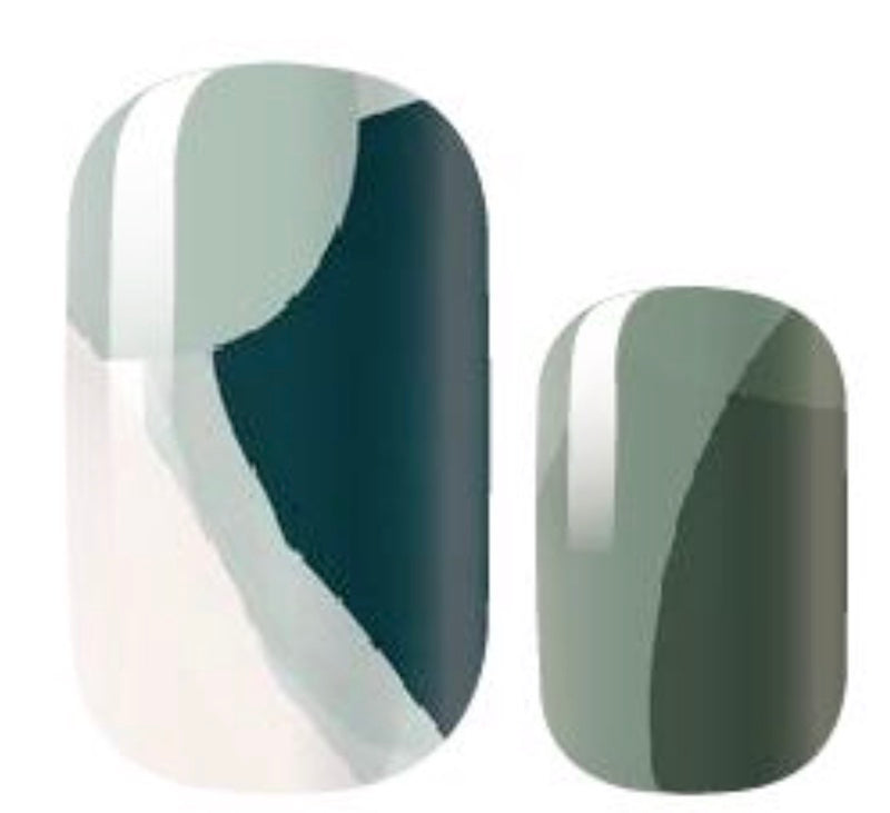 > Grey, green and blue abstract design with tiny silver glitter accents