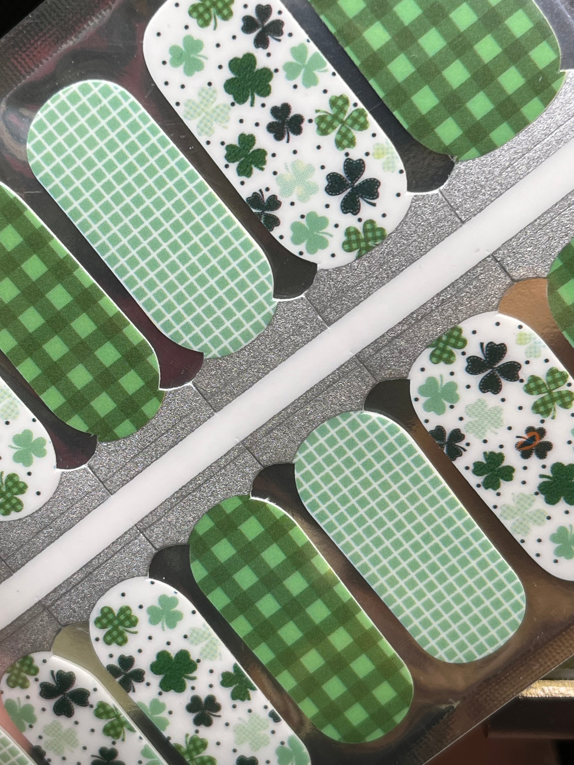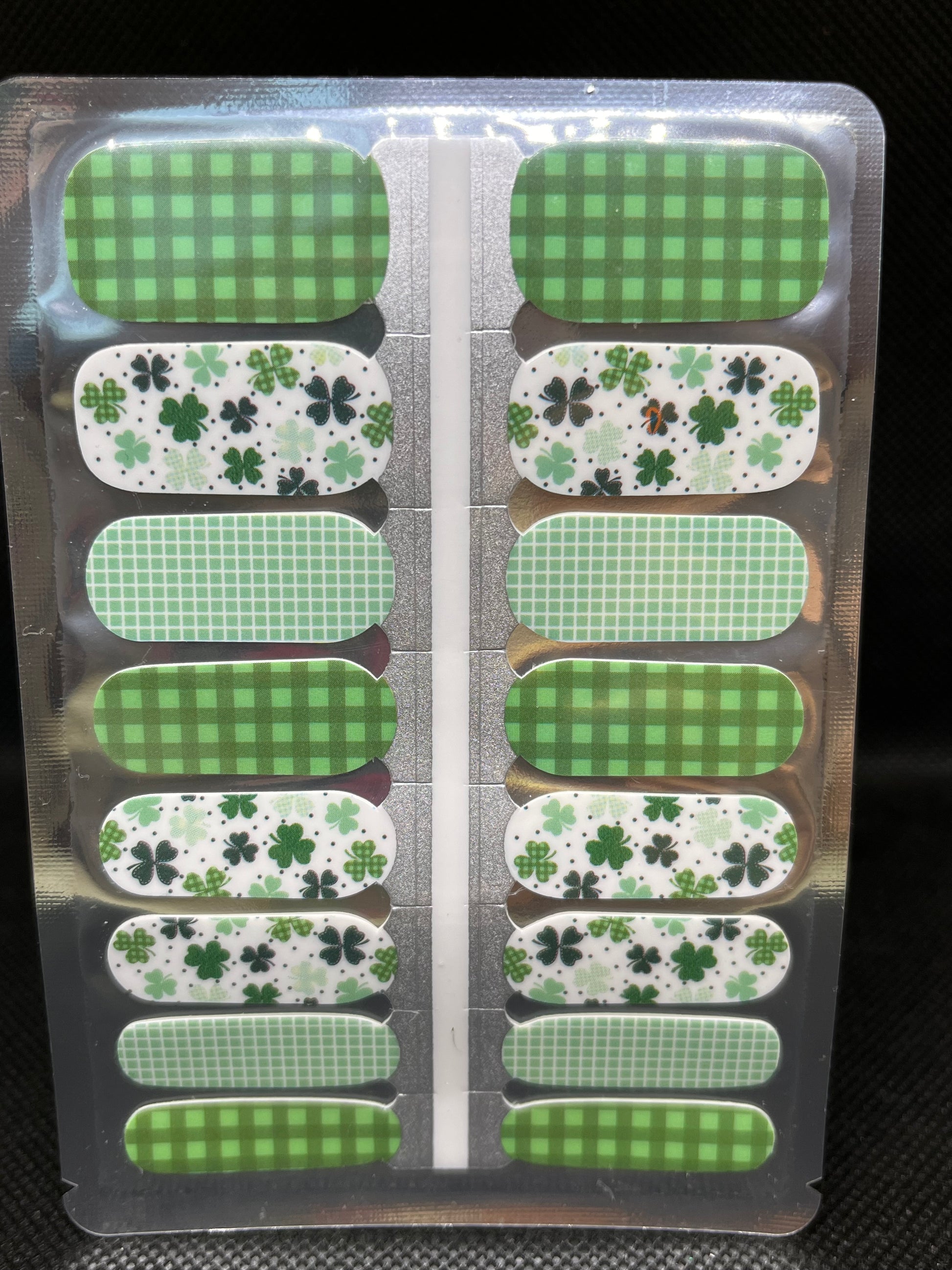 > 6 white wraps covered with a mix of light & dark green shamrocks