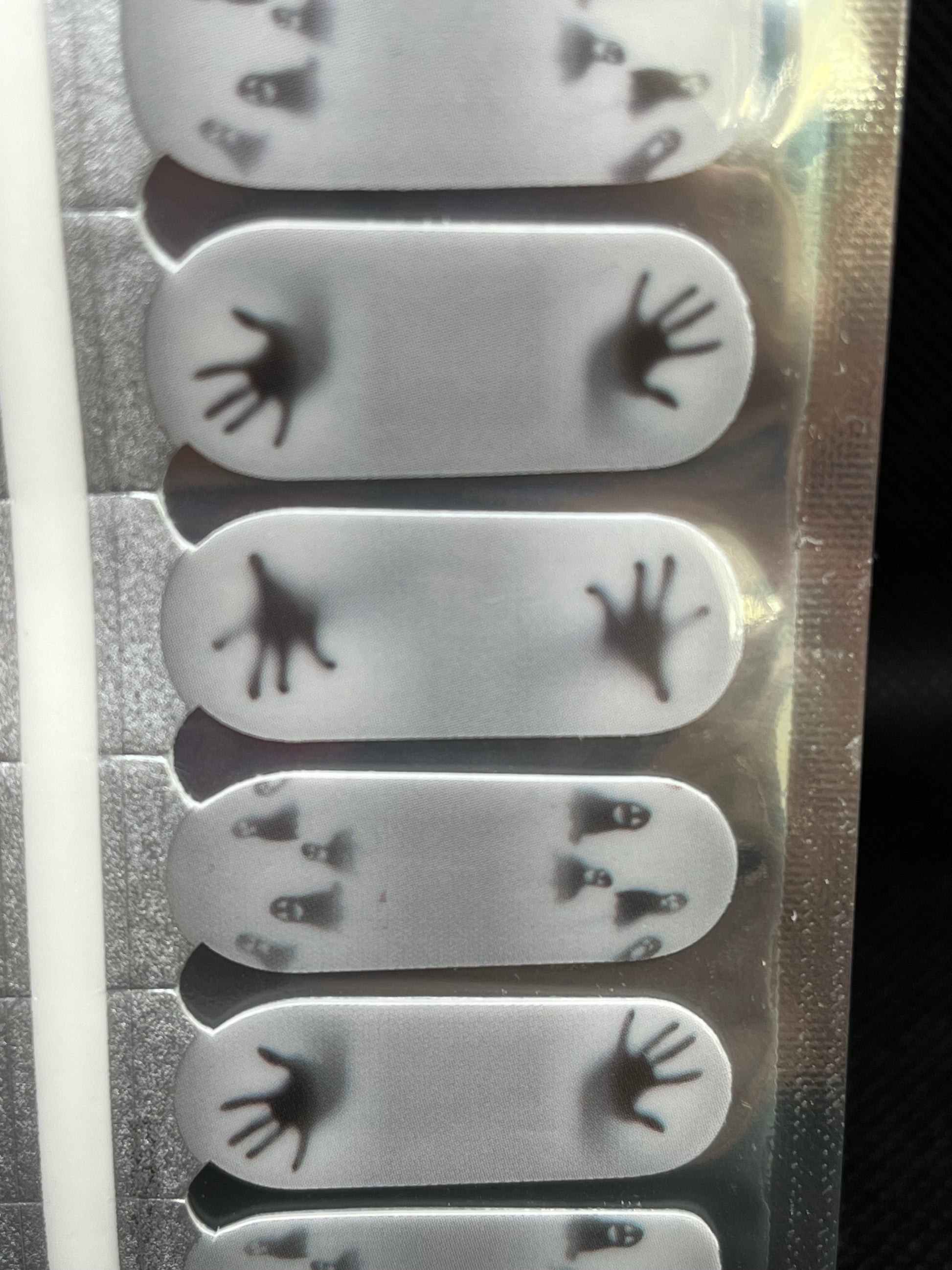 >spooky foggy grey background with shadowy black hands and ghostly heads