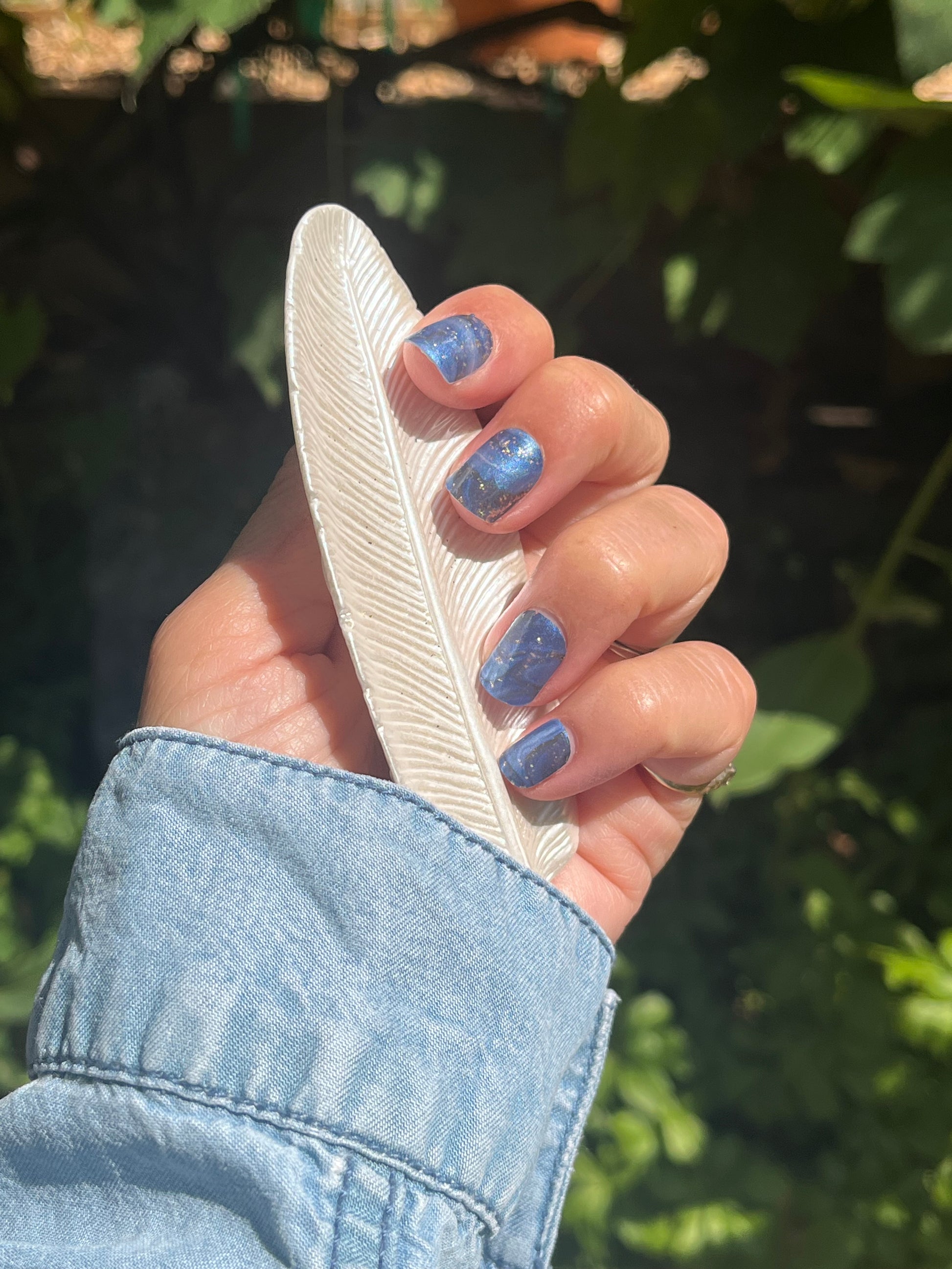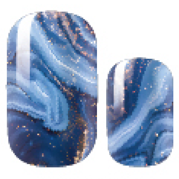 Bring drama to your manicure with Perfect Storm! These glossy blue marble nail wraps swirl from light to dark with striking highlights. Sophisticated and bold, theyβre the perfect choice for evenings out, special events, or when you want nails that make a statement without the salon visit.