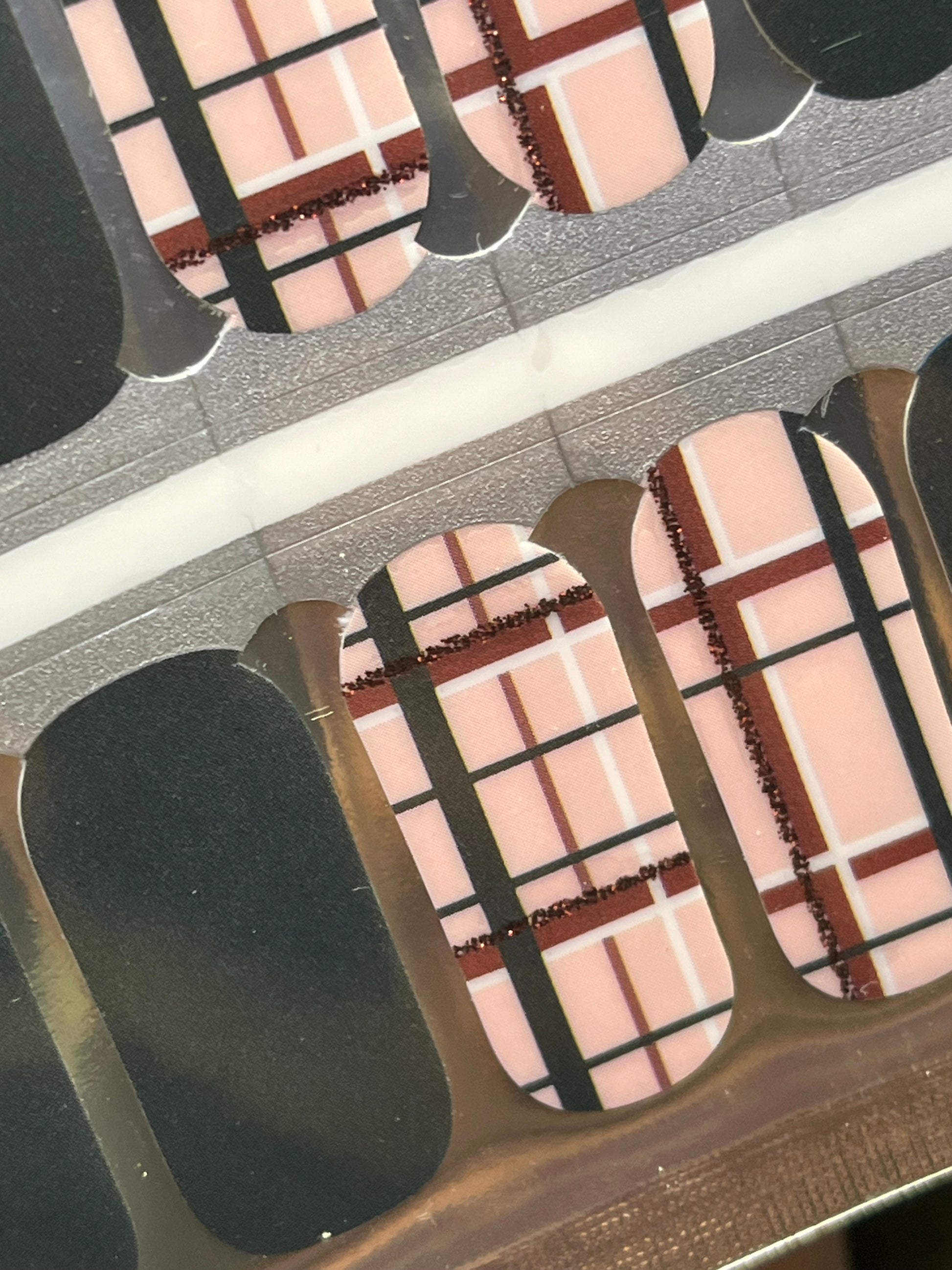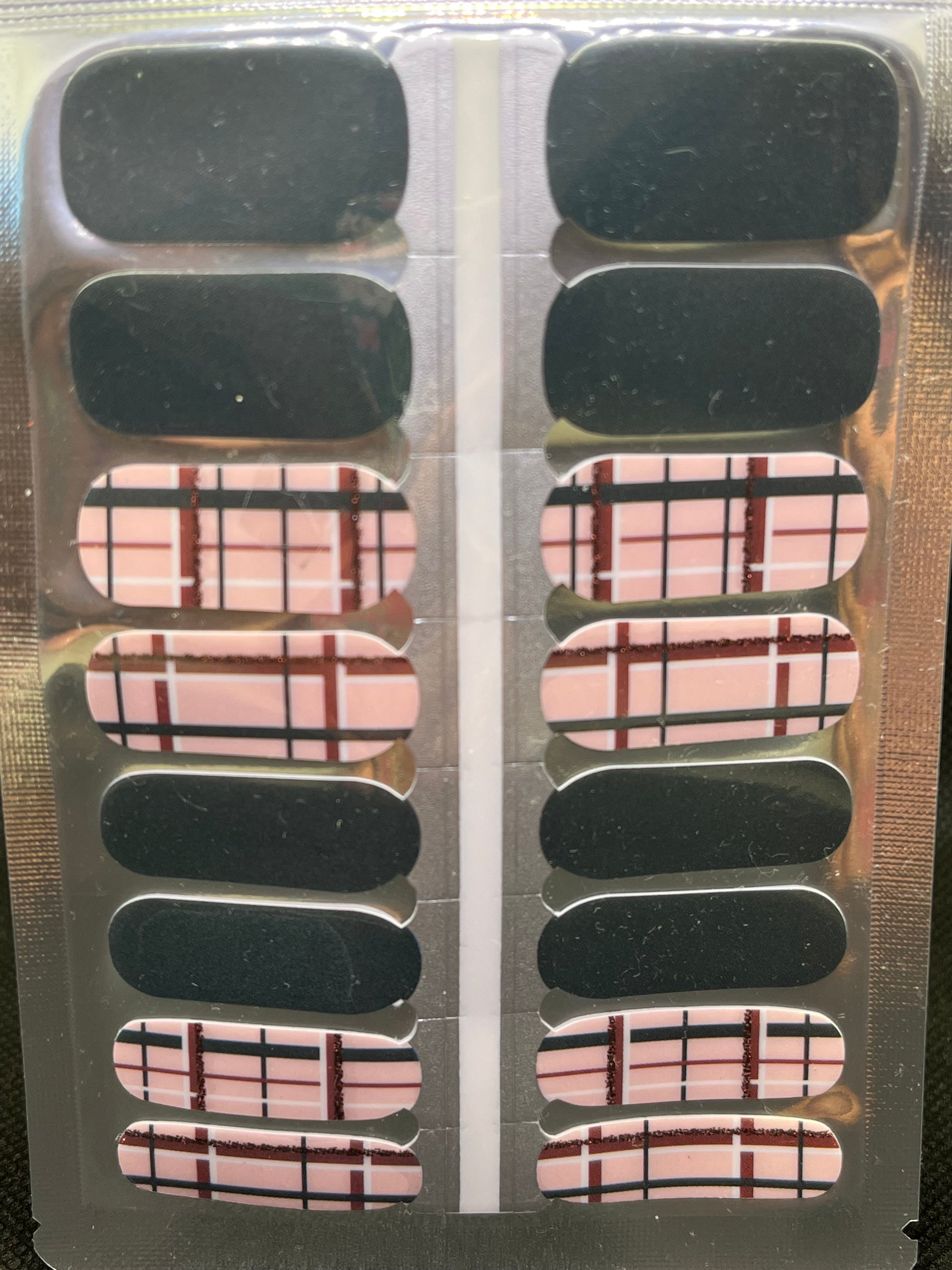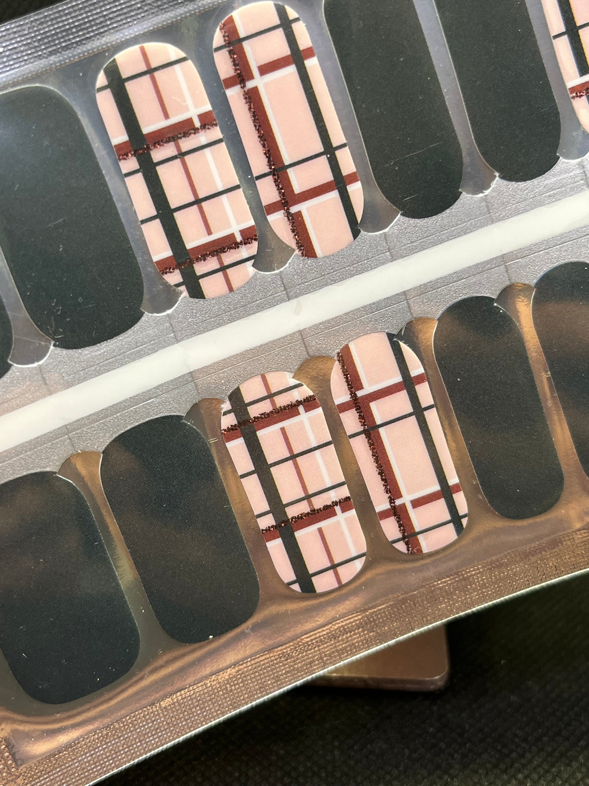>This set is comprised of 8 dark green solid wraps and 8 wraps with dark green, white and smokey red plaid pattern and includes dark red glitter accents. Bring on the sweater weather! Perfect for Fall.