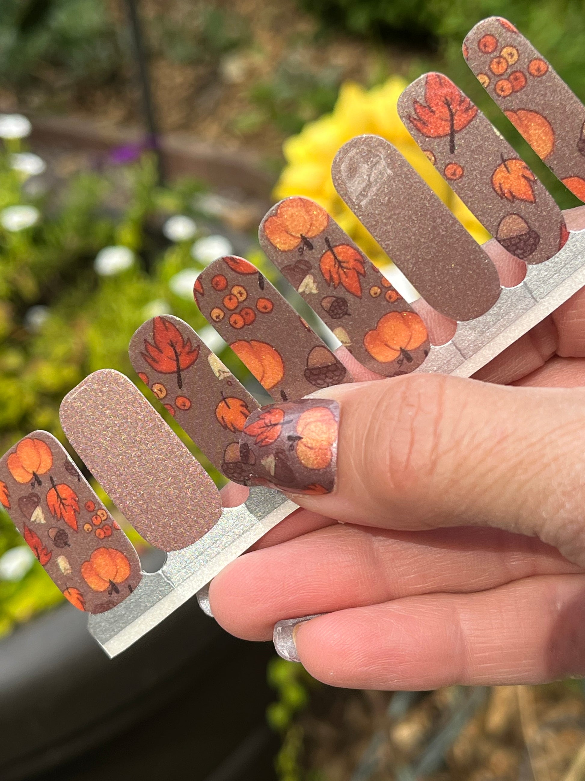 Pumpkin Spice – Fall Pumpkins & Leaves Shimmer Nail Wraps