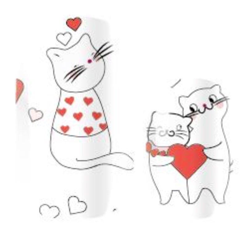 >Fanciful pencil sketch design of love-stuck cats & hearts on a white background