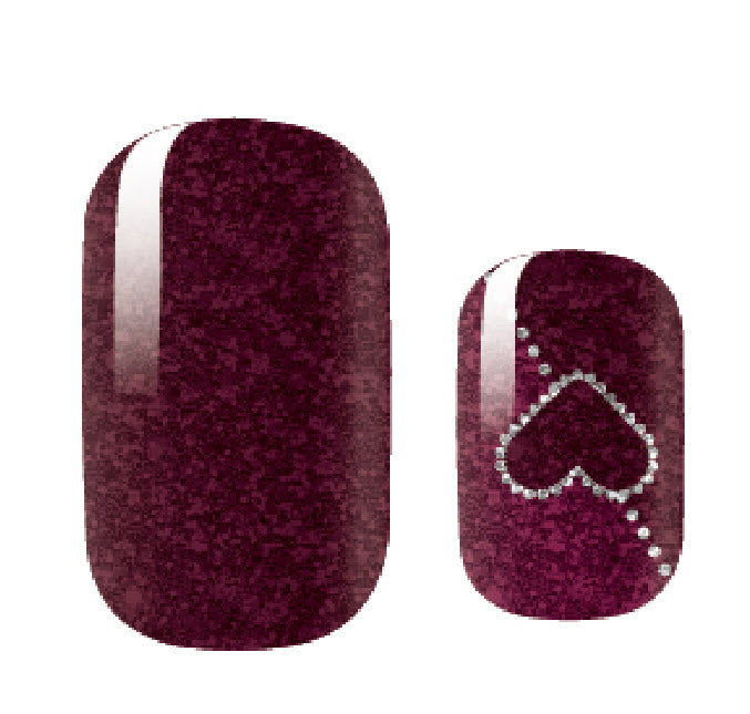 Mix of deep red and pink all over glitter wraps with silver heart accents