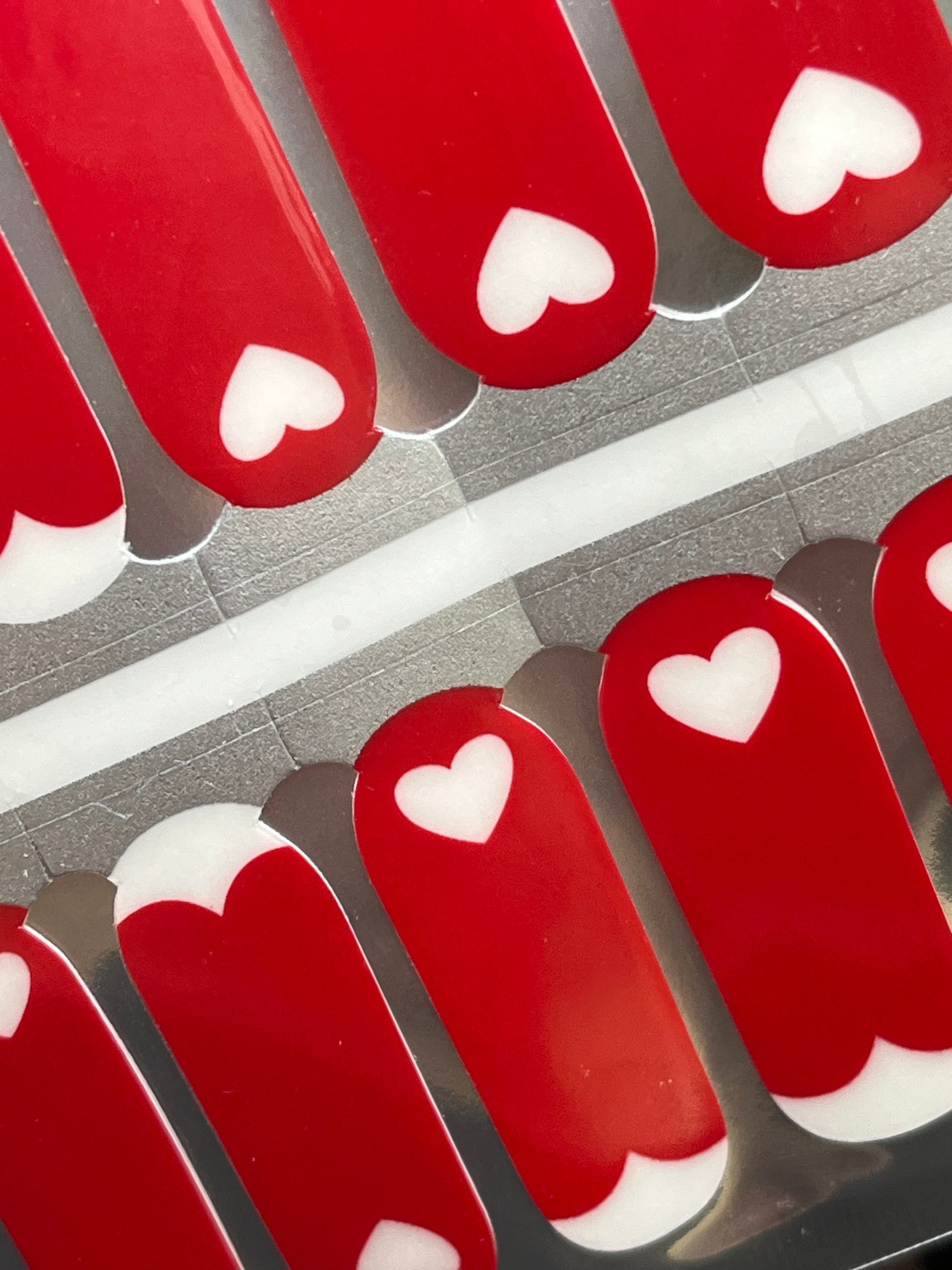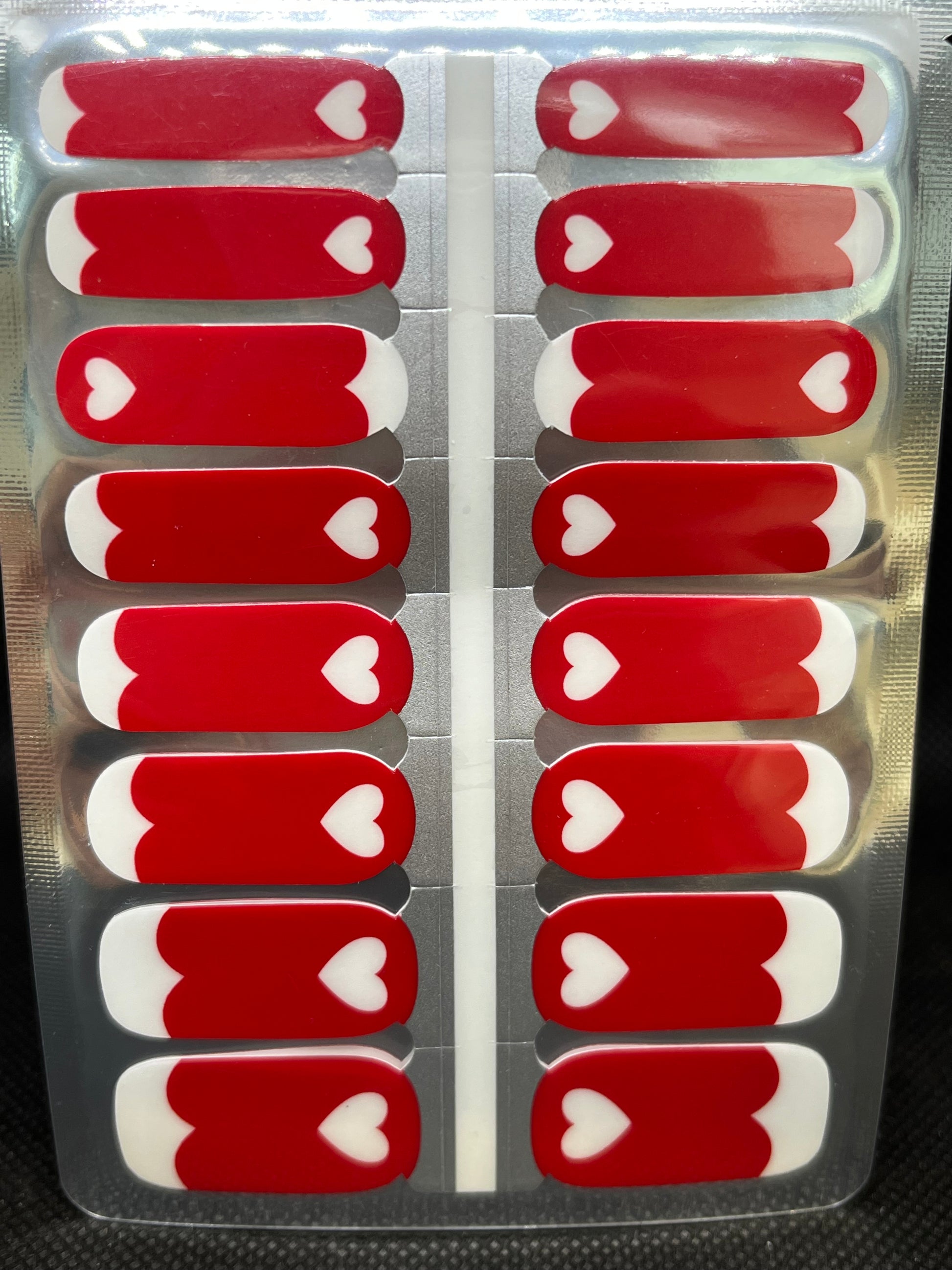 >Bold red wraps with single hearts at the end.