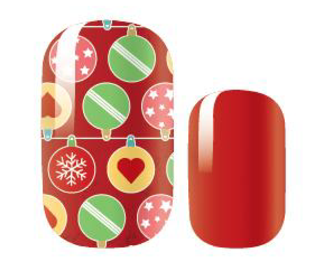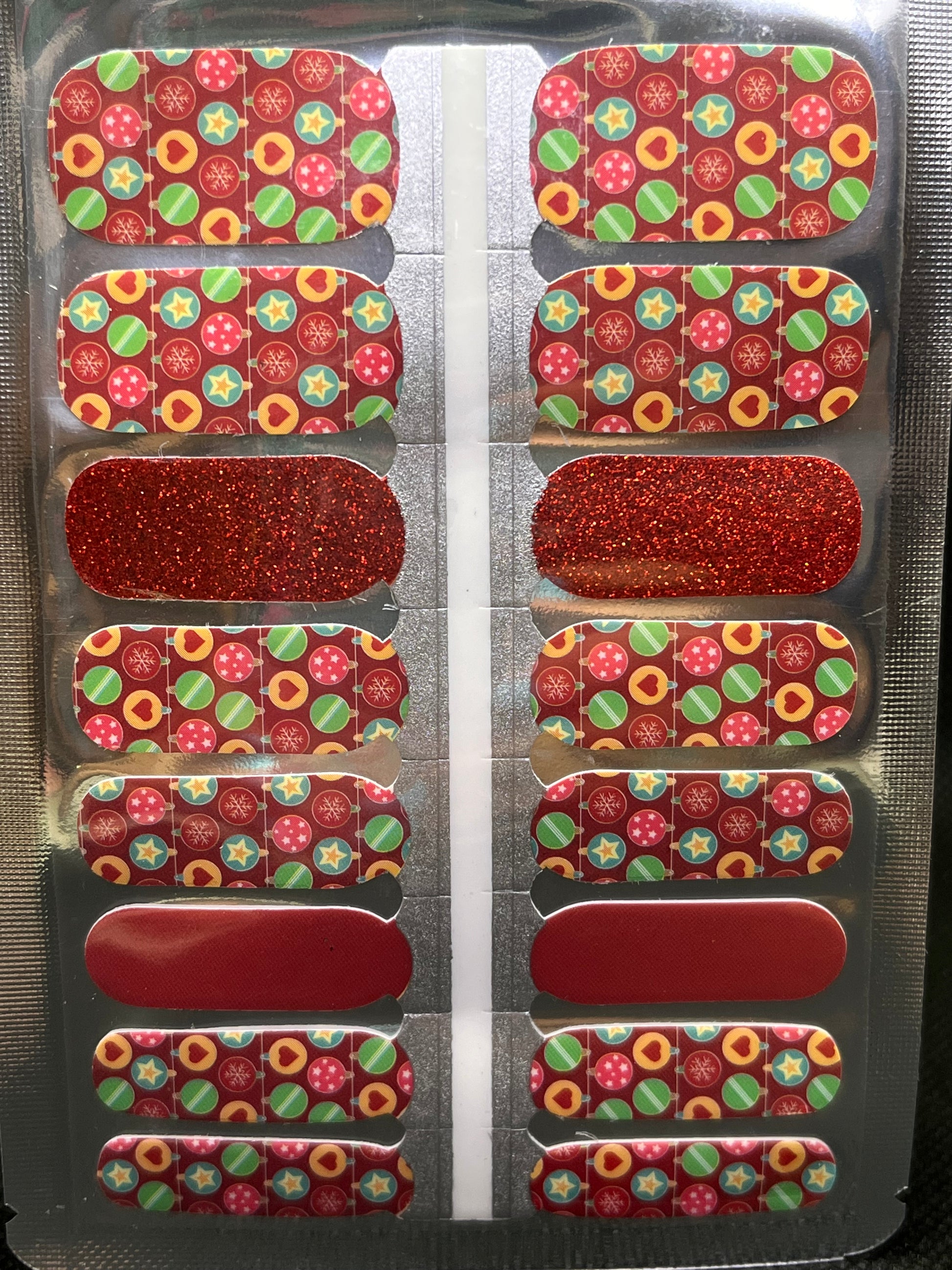 >A fun holiday design featuring 12 wraps of a red background with strings of holiday baubles plus two solid red accent wraps and two bright red glitter accent wraps.