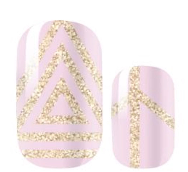 > Pale pink background with a mix of gold geometric pattern accents