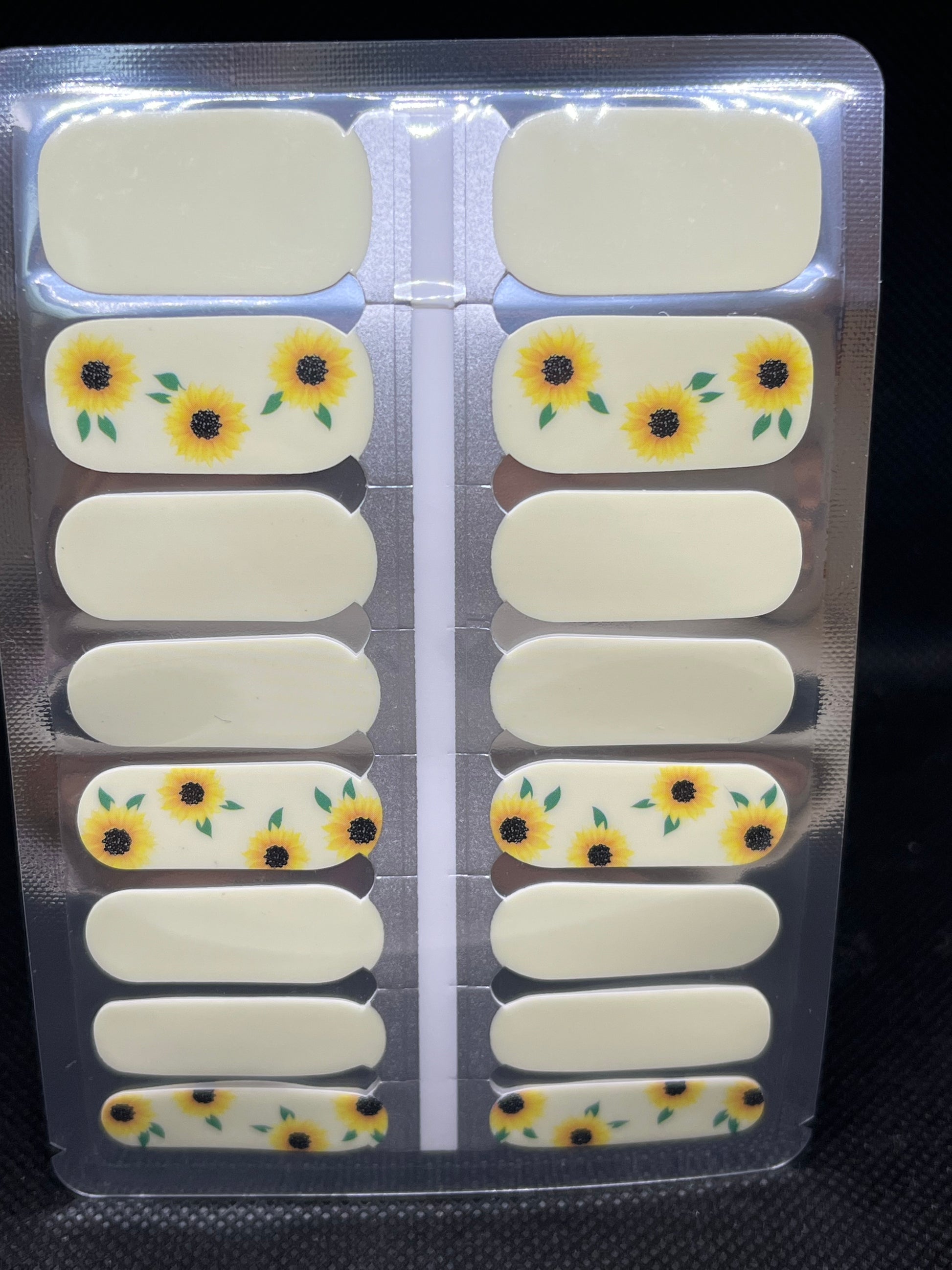 >Super pretty pale yellow background on all 16 wraps,  six feature 3 or 4 bright sunflower heads.