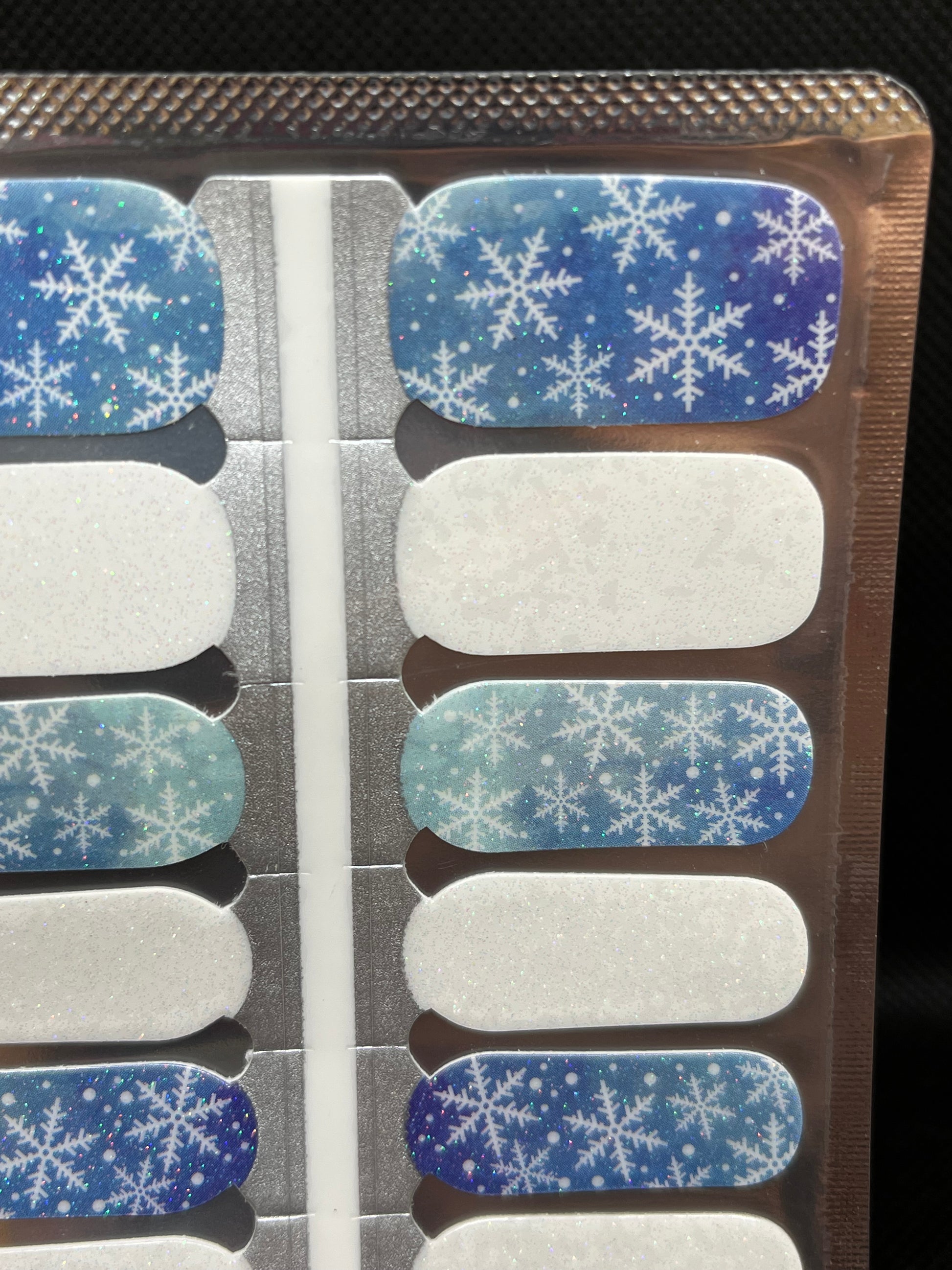 > A mix of 8 sparkly white wraps and 8 sparkly blue wraps with an all over snowflake design. Super pretty for the winter months.