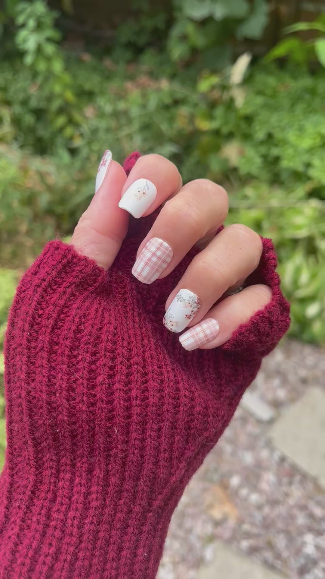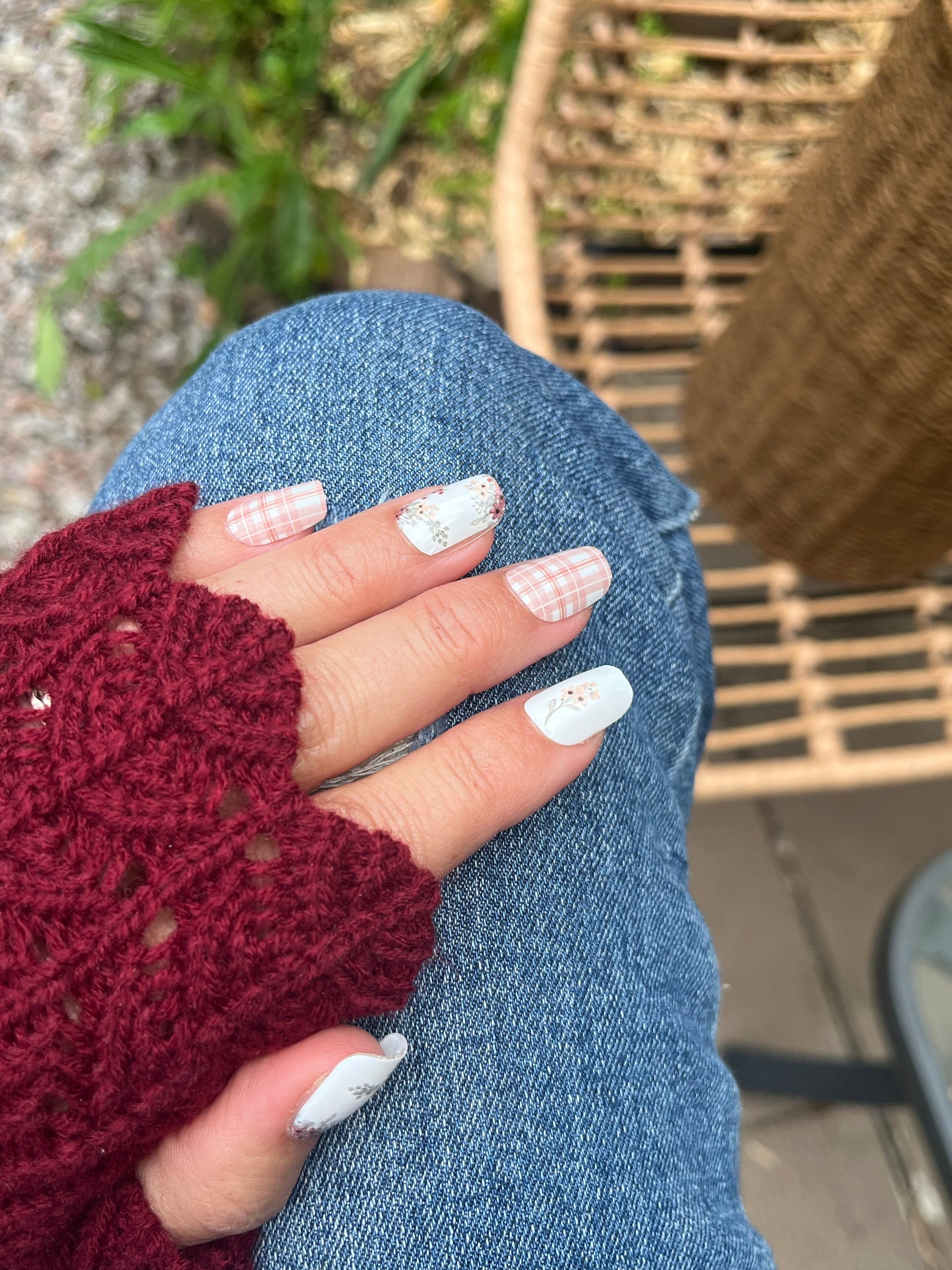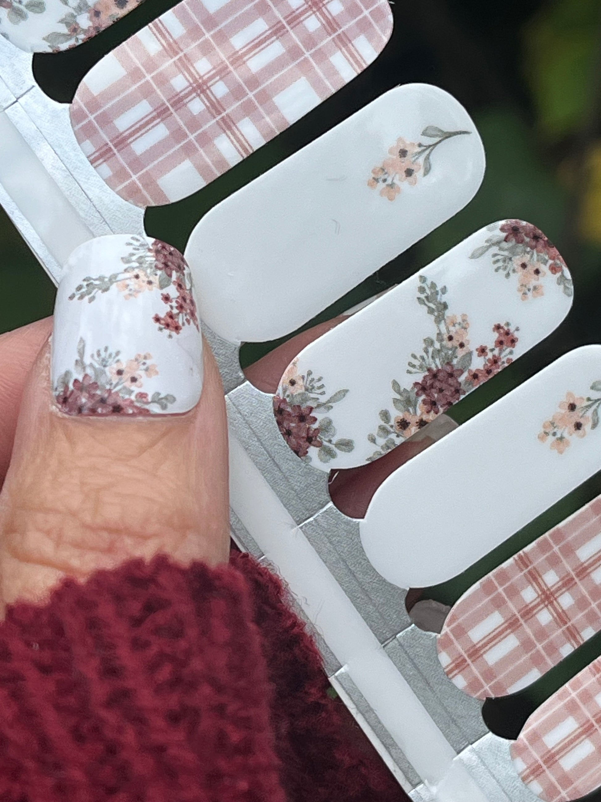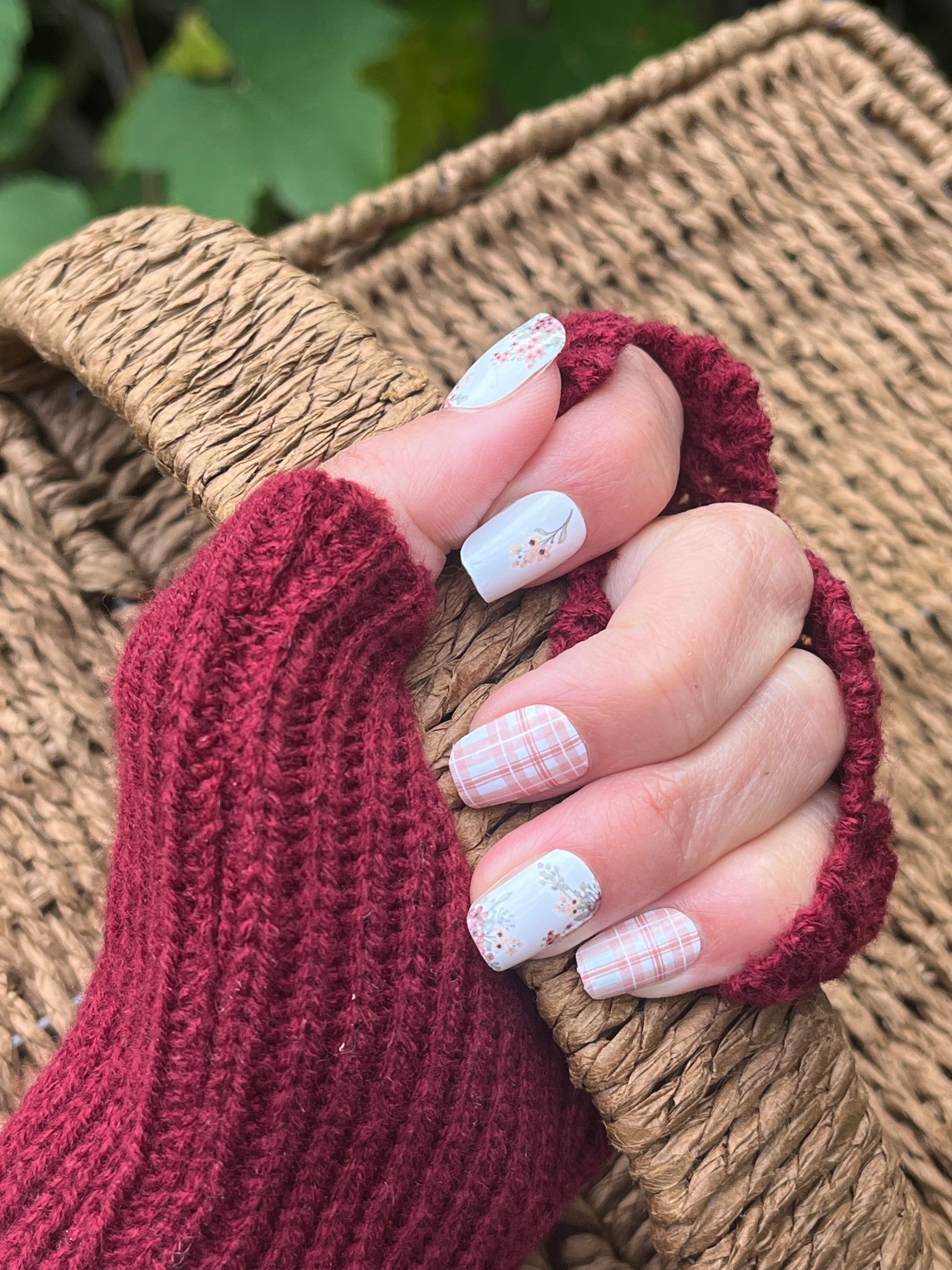Autumn Bouquet – Dusty Pink Plaid & Floral Nail Wraps