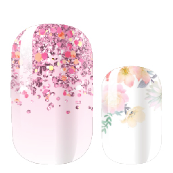 2 pink gradient wraps with a mix of small &  large glitter at tips