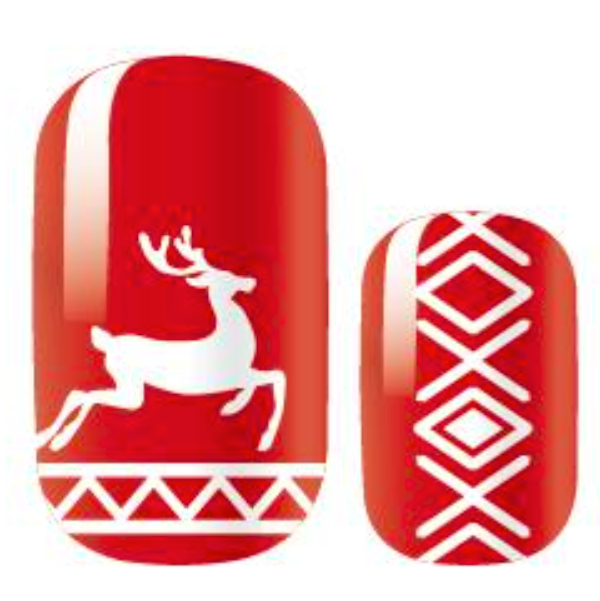 White designs on a red background create the feel of a traditional knit Christmas stocking.