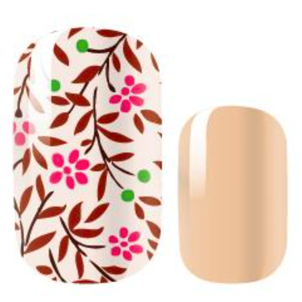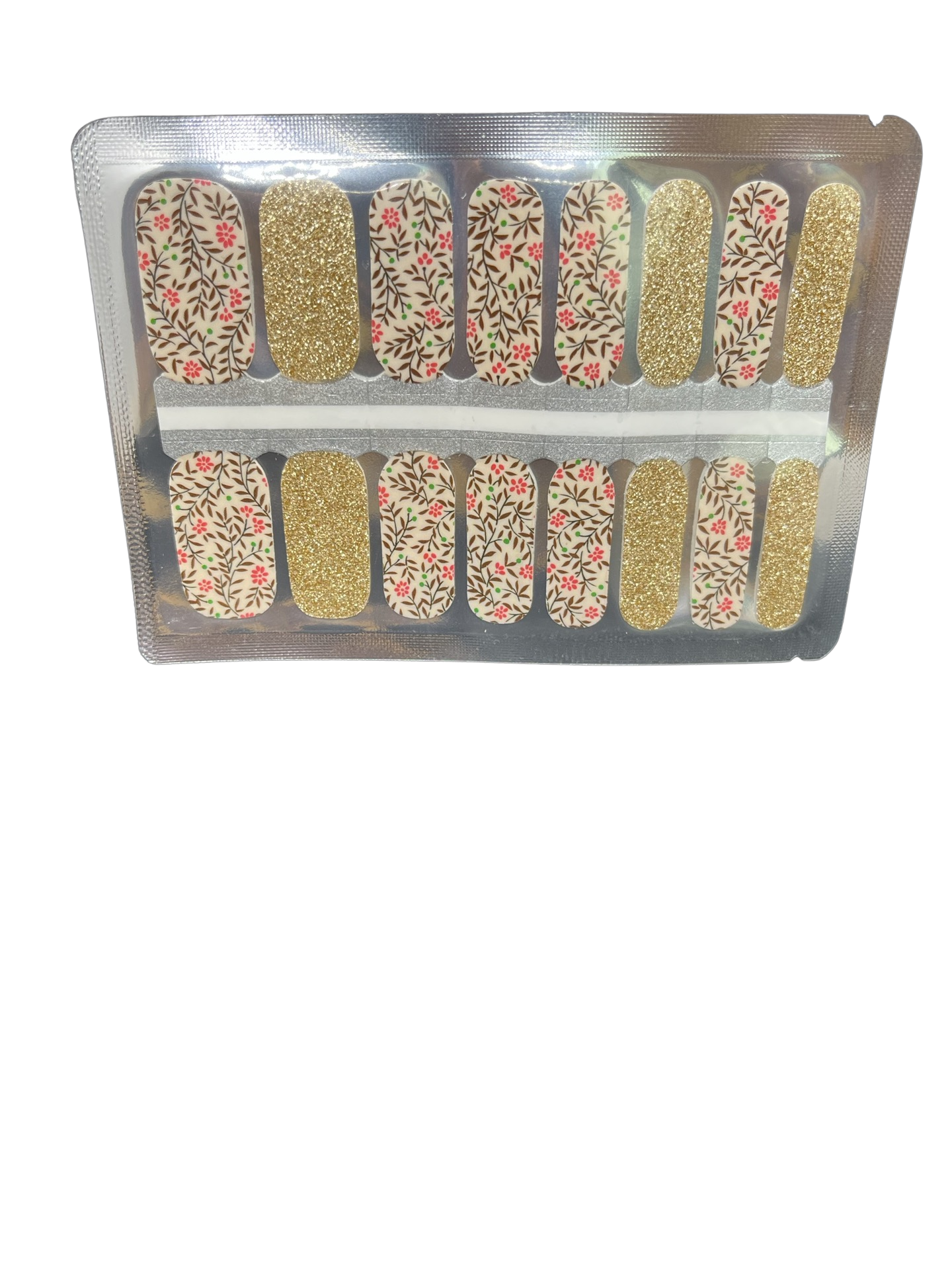 > 5- beige background wraps covered in garlands of brown leaves and pink flowers + 3 all-over gold glitter accent wraps