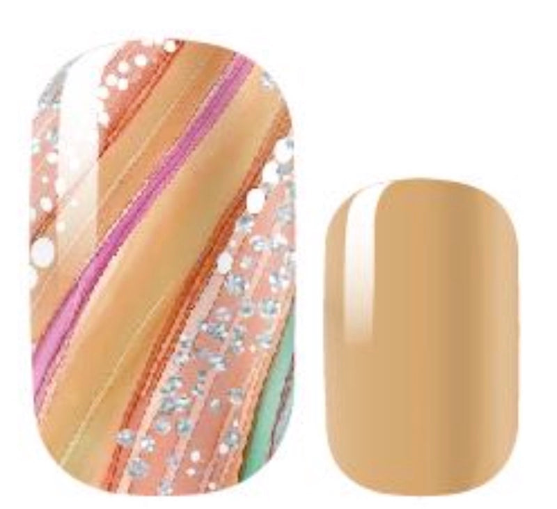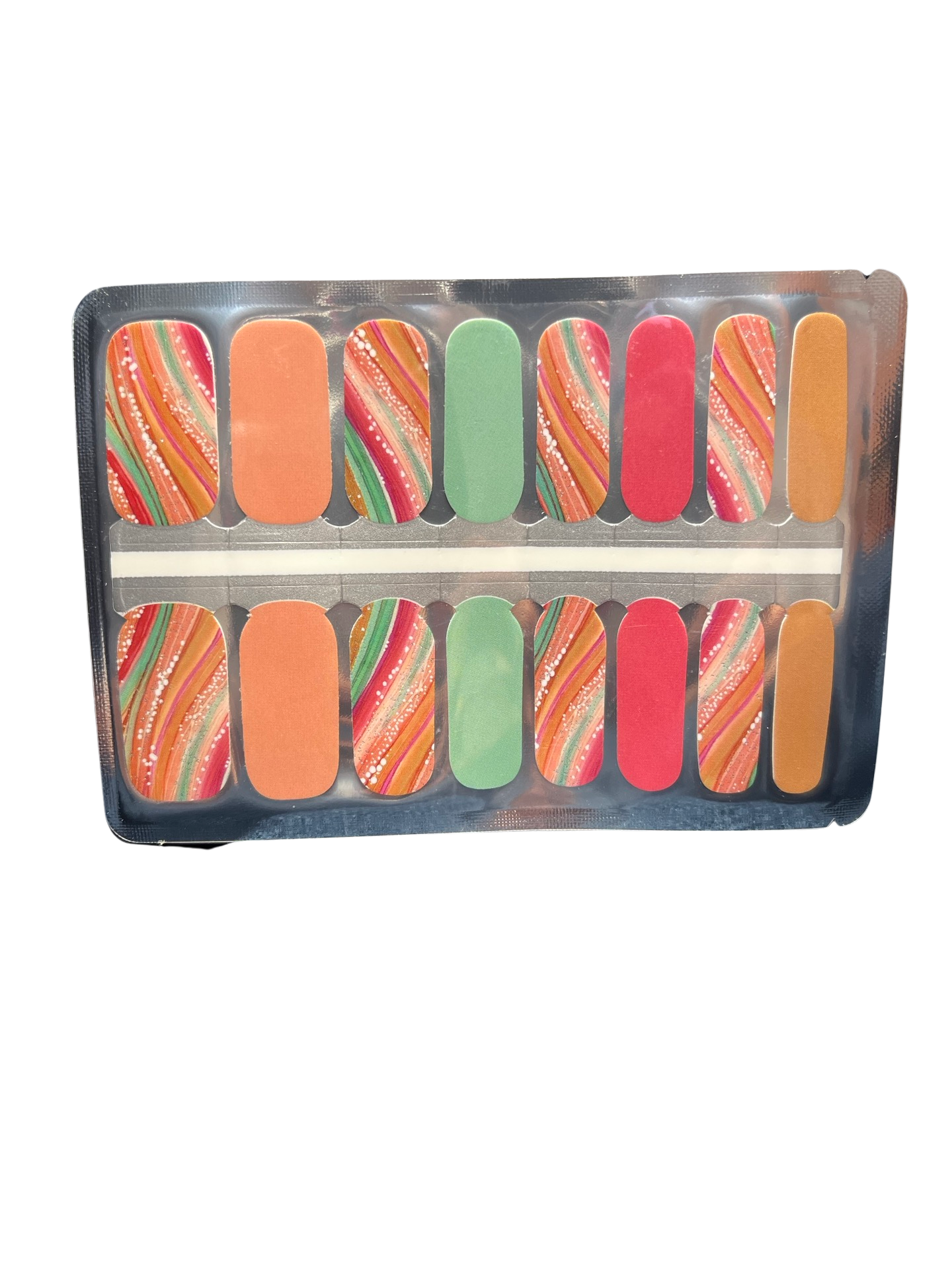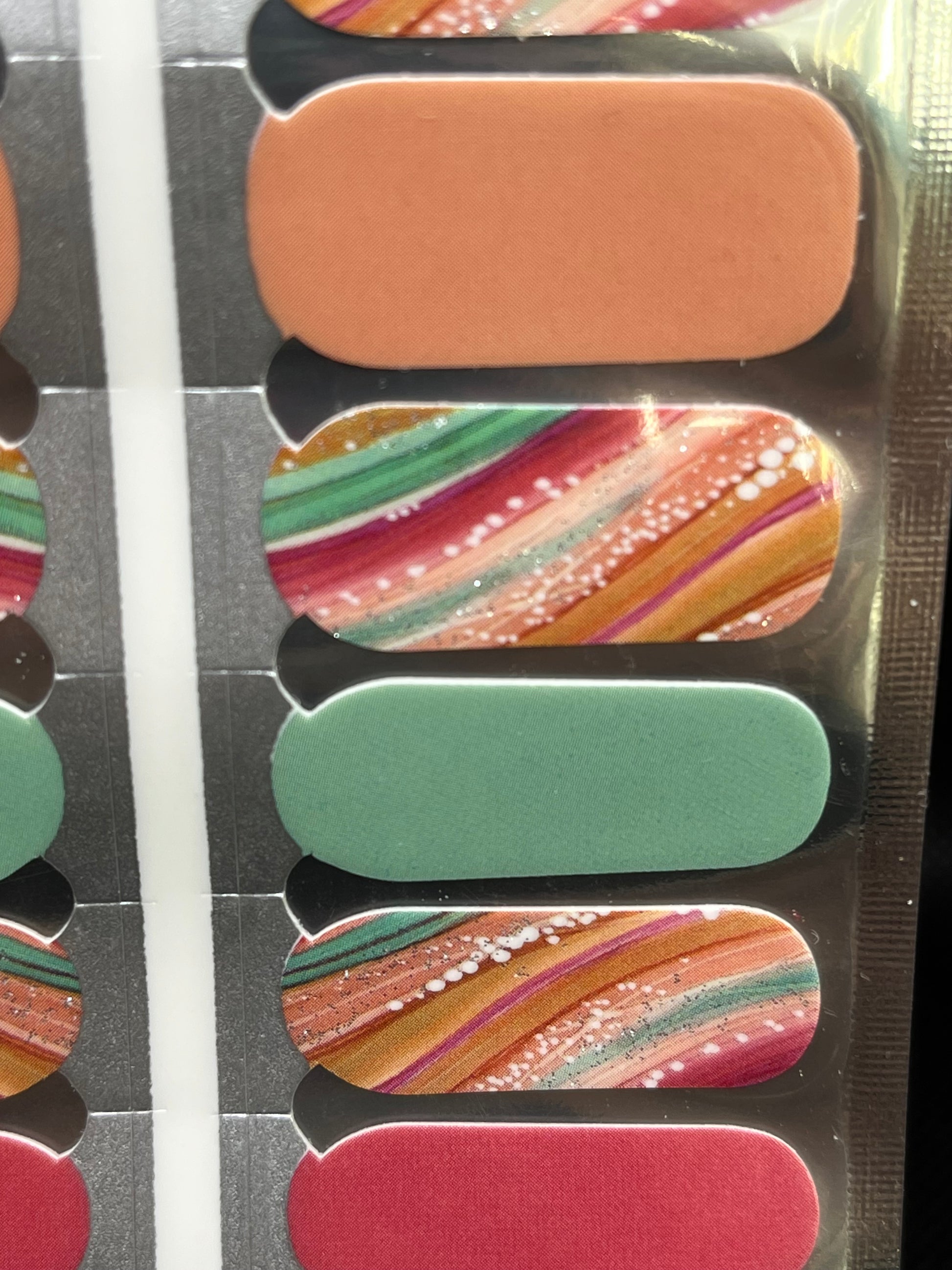 >Bold dramatic set. Mix of solid wraps and a swirling multicolour design. Eight solid wraps of mint green, raspberry pink & taupes. Eight swirling design wraps with micro glitter accents.