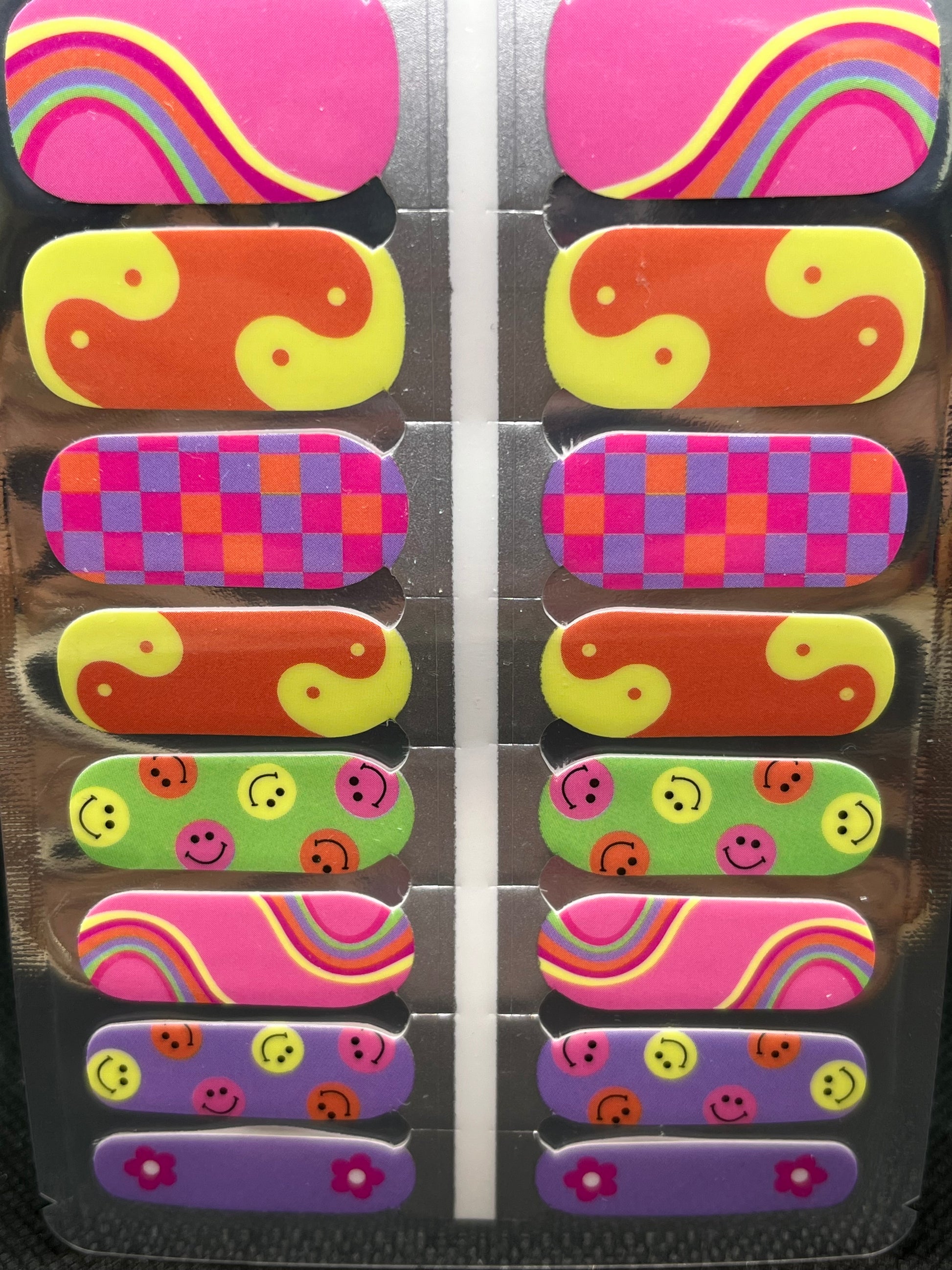 Beautiful gloss finish > WOW! Very bright retro '60s mod design with swirls and smiley faces in bold colours!