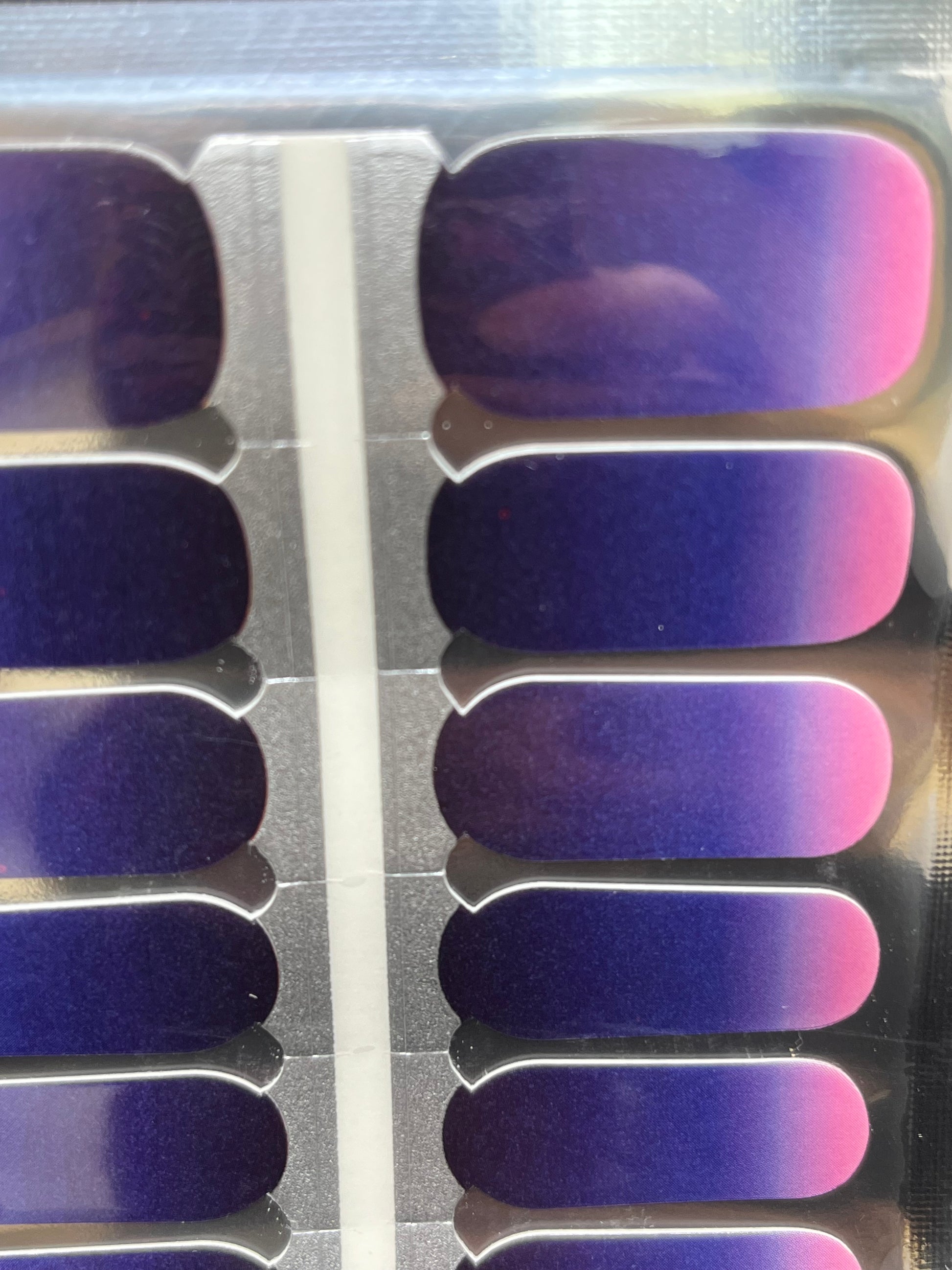 >Bold gradient design with hot pink base that changes to a deep purple at the tip of the wrap.
