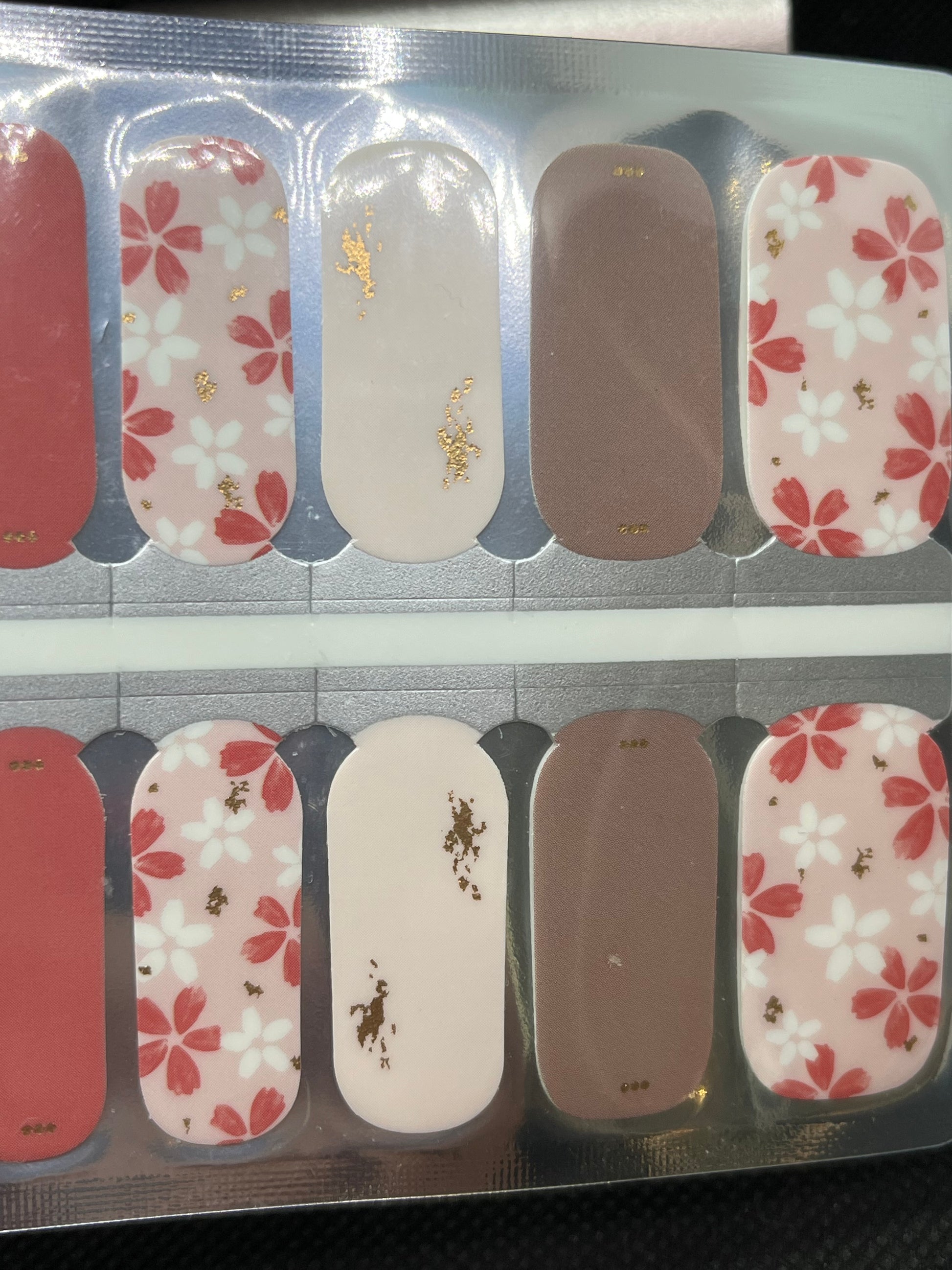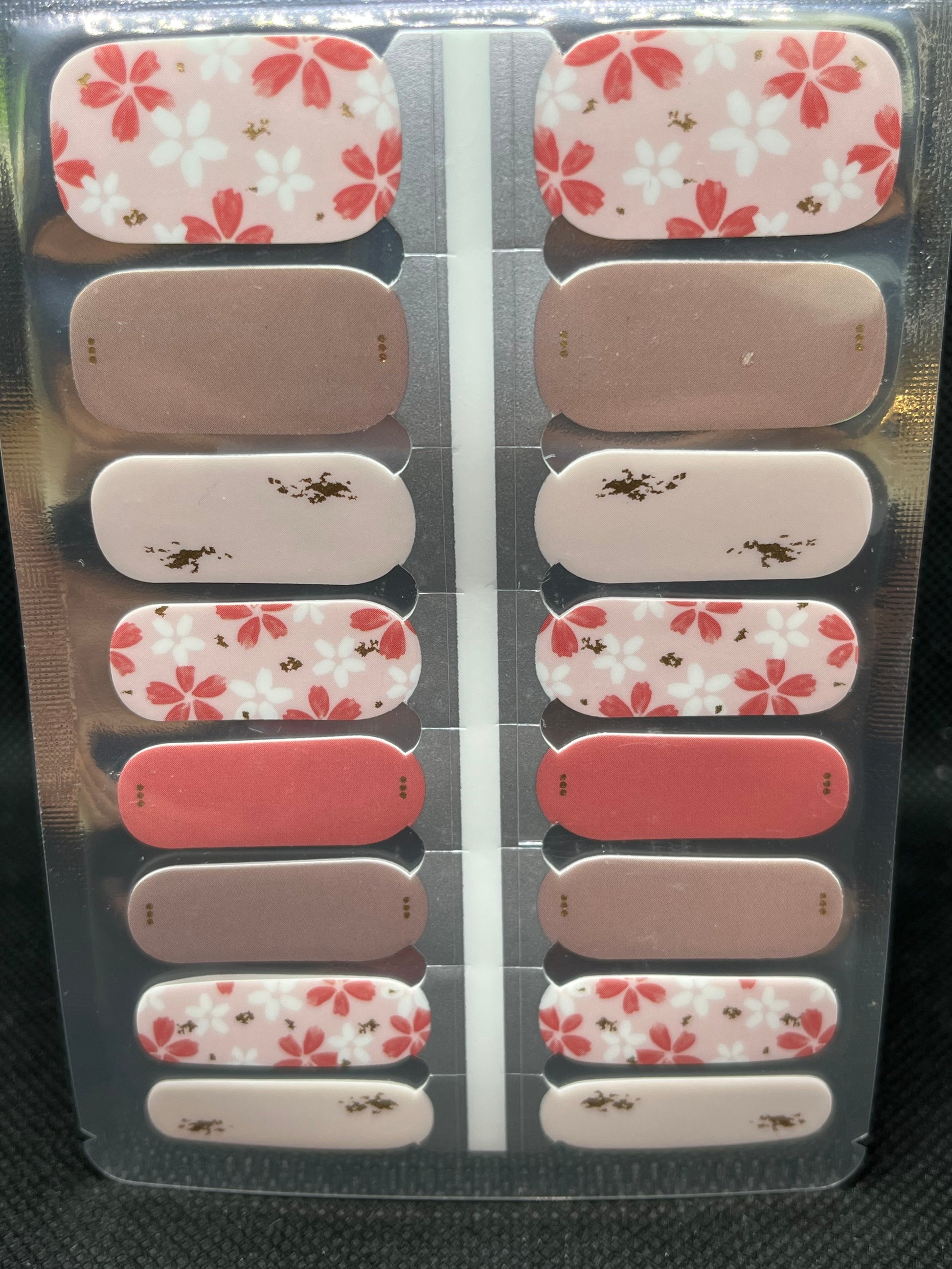 > Mocha, Coral and Cream are featured in this set of wraps with tiny gold accents.