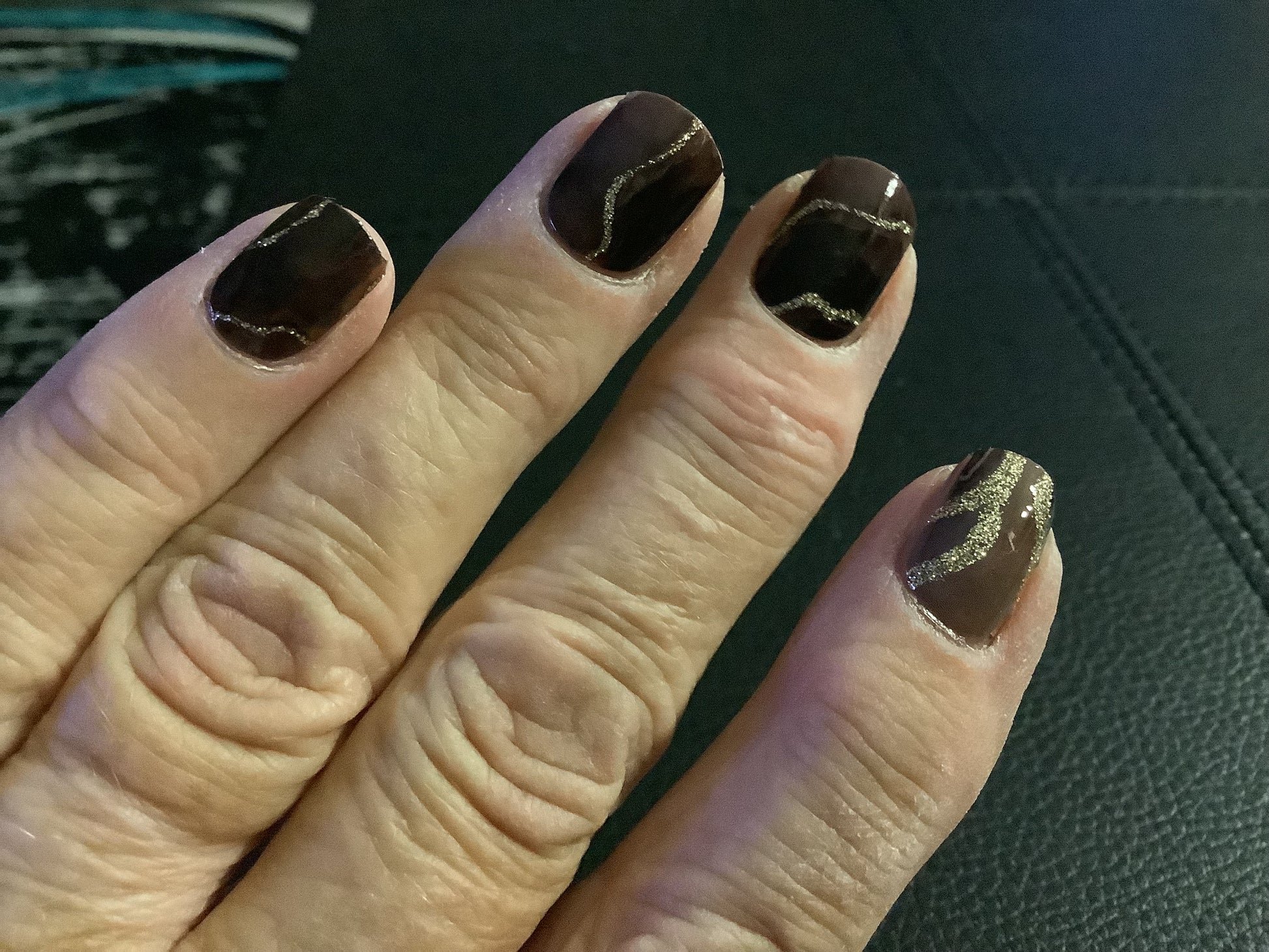 >Beautiful dark smoky brown & grey marble pattern with gold glitter vein highlights. Sophisticated and expensive looking.